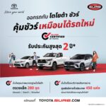 พิเศษ นำรถมาประเมินราคากับโตโยต้า ชัวร์ภายในงาน “บางกอก อินเตอร์เนชั่นแนล มอเตอร์โชว์ ครั้งที่ 46” วันที่ 26 มีนาคม – 6 เมษายน นี้ ที่ชาเลนเจอร์ ฮอลล์ 1-3 อิมแพ็ค เมืองทองธานี รับบัตรภาพยนตร์จำนวน 2 ที่นั่งมูลค่า 560 บาท และสำหรับลูกค้าที่แลกเปลี่ยนรถกับโตโยต้า ชัวร์ภายในงาน รับฟรีชุดอุปกรณ์เติมลมยางมูลค่า 1,700 บาท