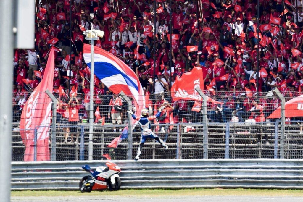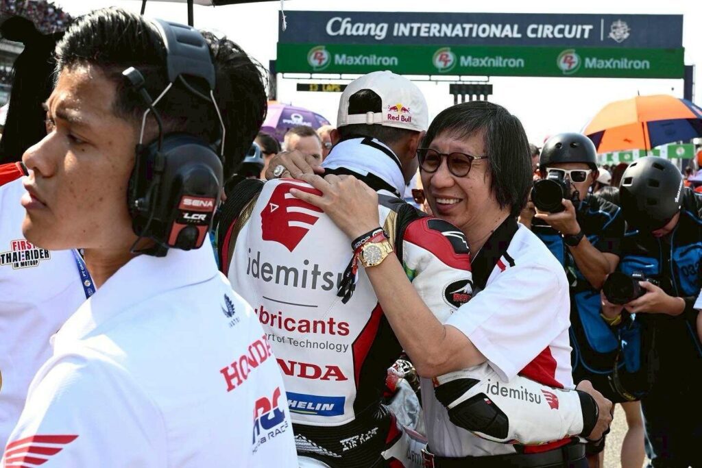ซึ่งในปี 2023 “ก้อง-สมเกียรติ” บันทึกประวัติศาสตร์อีกครั้ง ด้วยการเป็นนักบิดไทยคนแรก ที่ขึ้นโพเดียมระดับเวิลด์กรังด์ปรีซ์ในบ้านเกิด