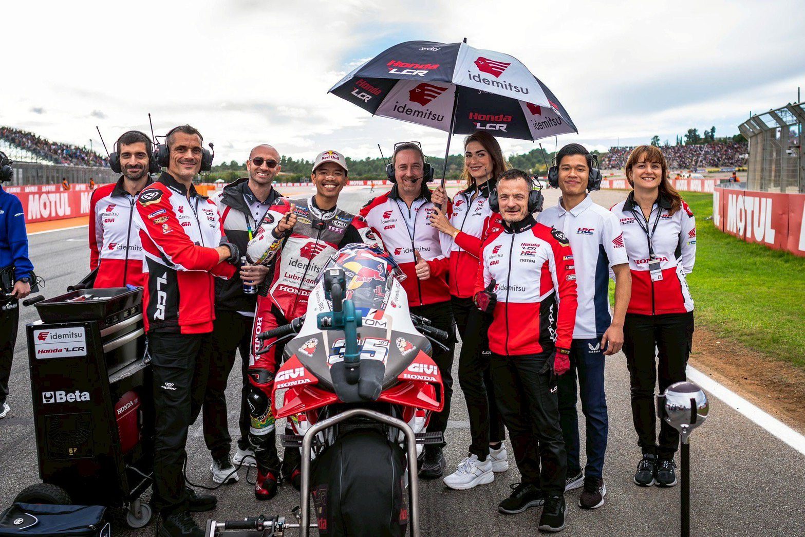 ซึ่งในปี 2023 “ก้อง-สมเกียรติ” บันทึกประวัติศาสตร์อีกครั้ง ด้วยการเป็นนักบิดไทยคนแรก ที่ขึ้นโพเดียมระดับเวิลด์กรังด์ปรีซ์ในบ้านเกิด