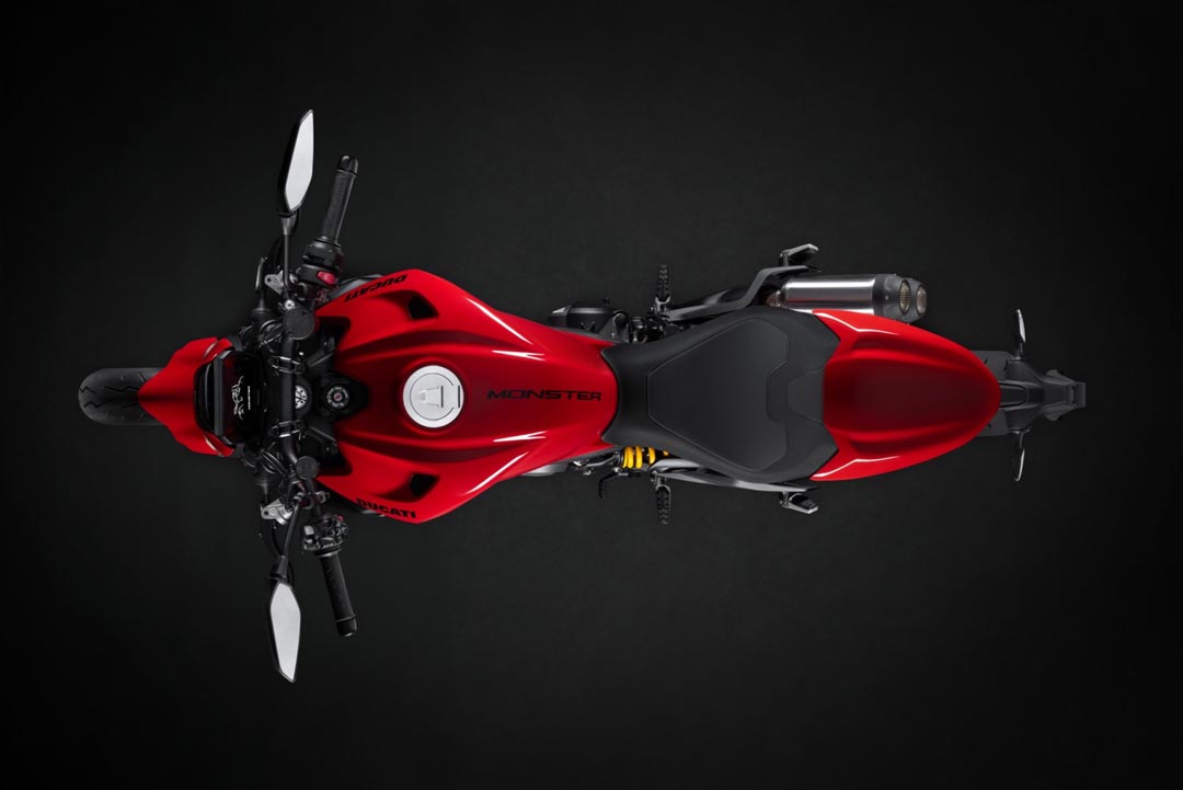 Monster รุ่นใหม่ได้รับการออกแบบขึ้นใหม่ โดยผสานเทคโนโลยีและดีไซน์ที่โดดเด่นเข้าด้วยกัน ตัวรถมีเส้นสายสปอร์ต แต่ยังคงความดุดัน พร้อมจุดสำคัญที่เป็นเอกลักษณ์ของ Monster ไม่ว่าจะเป็น ถังน้ำมันทรง Bison-back ที่เป็นเอกลักษณ์ของรถ Naked ของ Ducati ที่ถูกออกแบบใหม่ พร้อมดีไซน์ช่องรับอากาศด้านหน้า ที่ได้รับแรงบันดาลใจจาก Monster ใน Generation ที่ 2 มาพร้อมไฟหน้าที่ได้รับการดีไซน์ใหม่แบบ Full-LED Double “C” ตัวเบาะนั่งได้รับการออกแบบให้แคบลงและเตี้ยลง โดยมีความสูงรวม 775 มม. เพื่อช่วยให้ผู้ขับขี่รู้สึกมั่นใจได้มากขึ้น