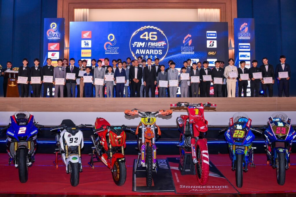 งาน FMSCT Champion Awards 2025 พิธีมอบรางวัลแชมป์ประเทศไทยในการแข่งขันรถจักรยายนต์ที่รับรองโดยสมาคมกีฬาแข่งรถจักรยานยนต์แห่งประเทศไทย โดยงานครั้งนี้ได้รับเกียรติจาก นายอรรถกร ศิริลัทธยากร (รักษาการ)รัฐมนตรีว่าการ กระทรวงการท่องเที่ยวและกีฬา ร่วมงานพร้อมเป็นผู้มอบรางวัลนักกีฬาสร้างชื่อเสียงให้ประเทศ ร่วมกับคุณธงชัย วงษ์สวรรค์ ประธานสมาพันธ์ (FMSCT) และนายกสมาคมฯ (MSAT) ทีม “ฮอนด้า เรซซิ่ง ไทยแลนด์” กวาดรางวัลจากความสำเร็จในการแข่งขันรวมถึงการสร้างชื่อเสียงให้กับประเทศไทย สะท้อนผลสำเร็จจากความมุ่งมั่นในการวางรากฐานพัฒนานักบิด สนับสนุนเยาวชนนักแข่งไทย รวมถึงมอบโอกาสในการลงสนามแข่งขันมาอย่างต่อเนื่อง โดยมีนักแข่งที่ได้รับรางวัลประเภทต่าง ๆ และรายการที่ลงแข่งขัน ดังนี้