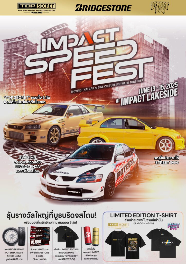 บริดจสโตน ร่วมกับ TOP SECRET THAILAND และ STREET DOC ชวนสัมผัสประสบการณ์มอเตอร์สปอร์ตสุดเร้าใจ พร้อมเป็นผู้สนับสนุนหลักในงาน “IMPACT Speed Fest 2025”