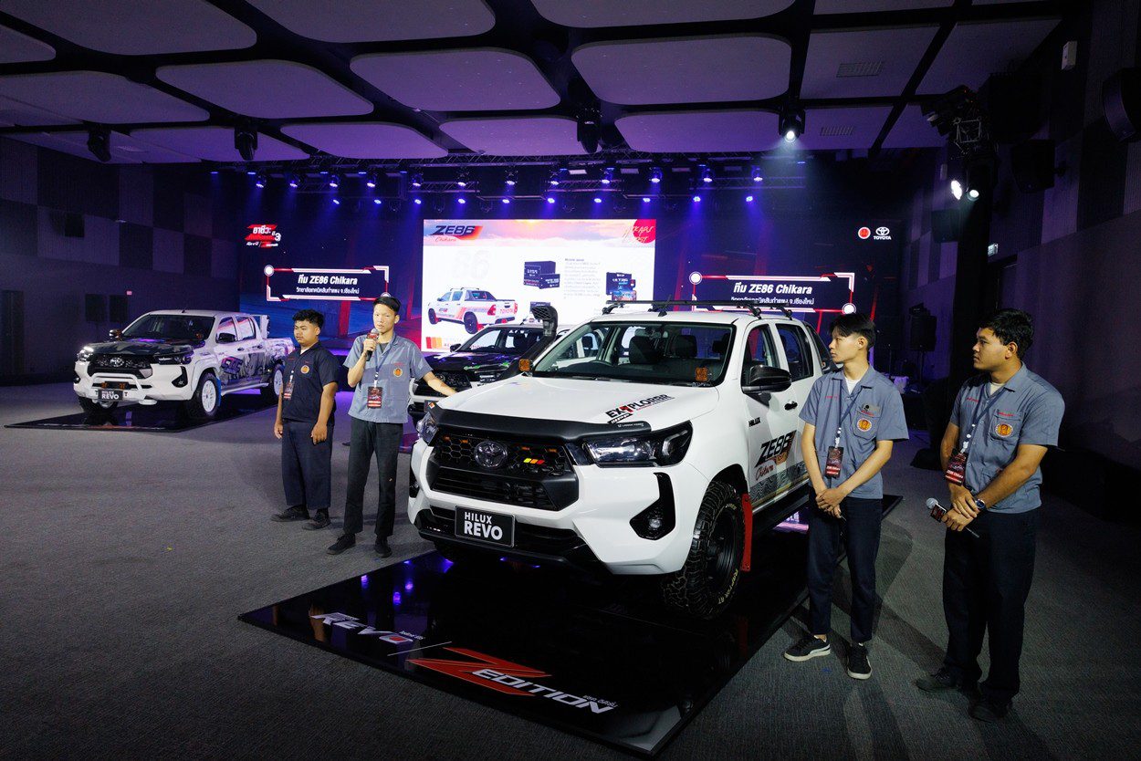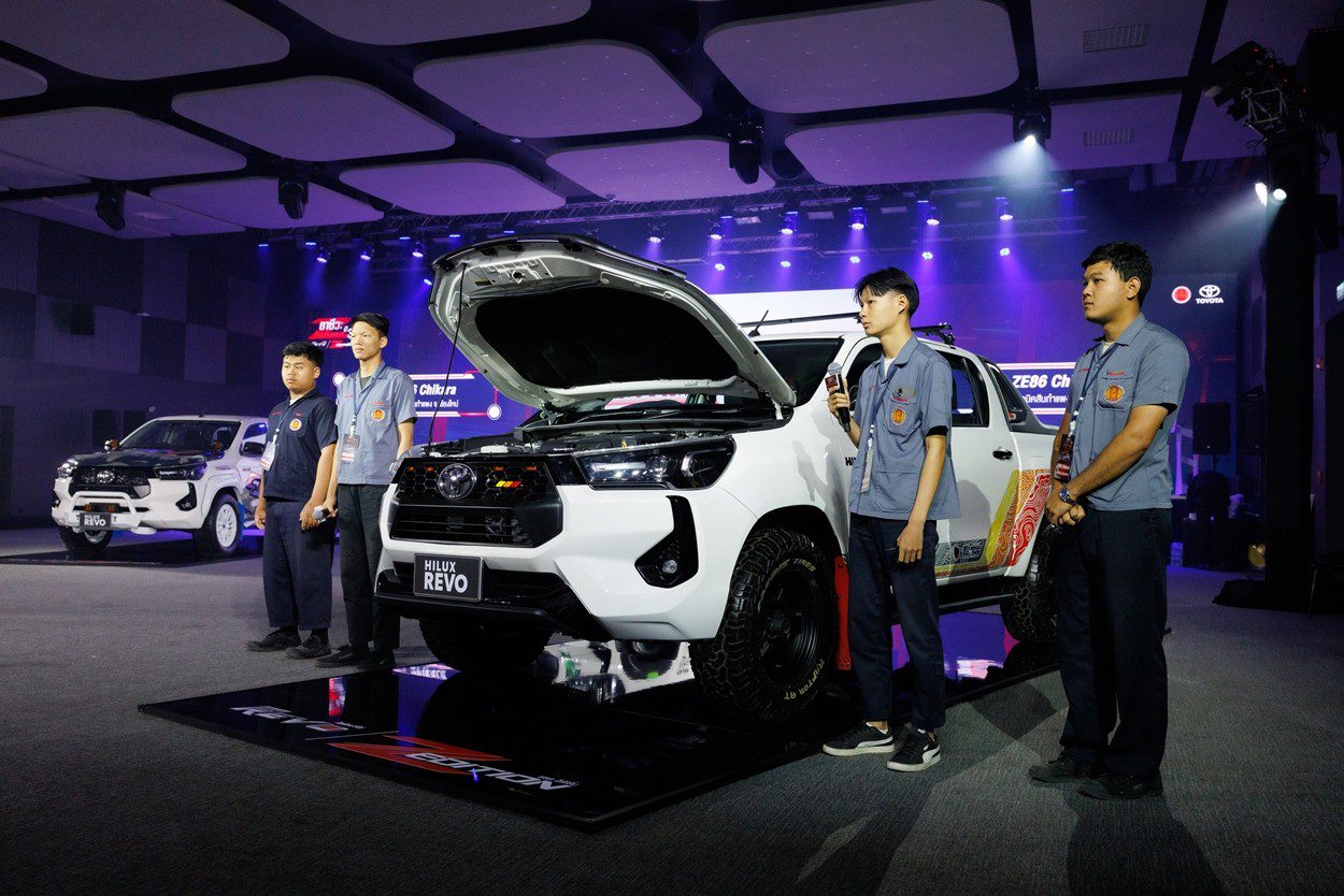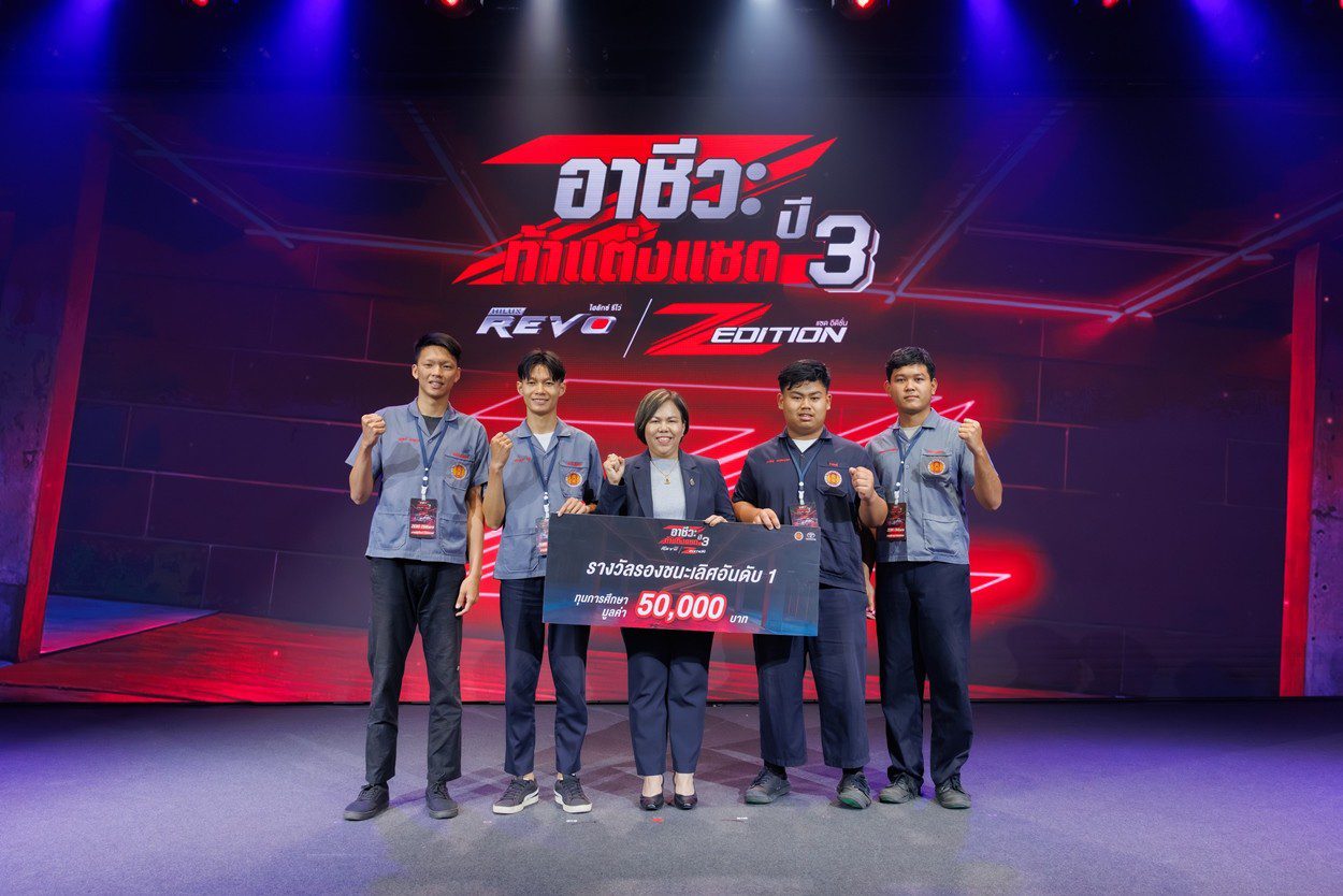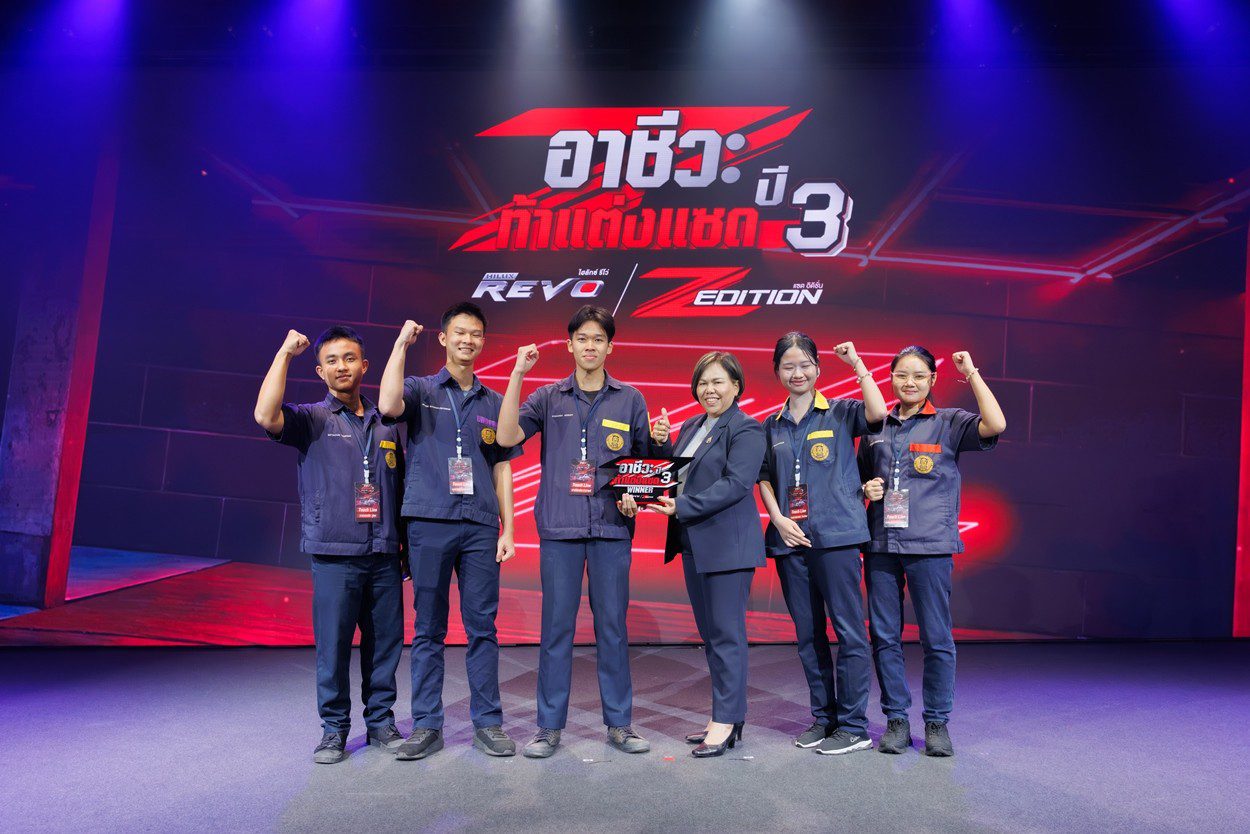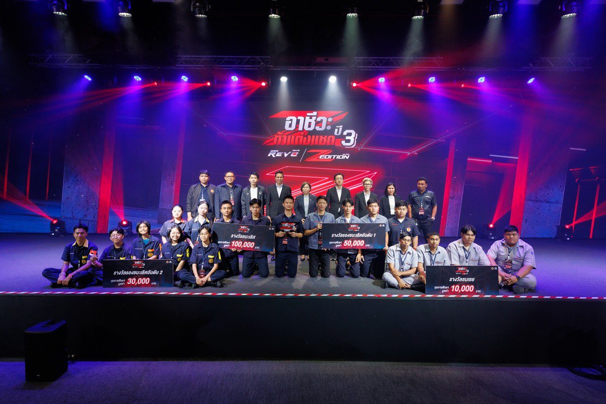 นายณัทธร ศรีนิเวศน์ ผู้ช่วยกรรมการผู้จัดการใหญ่ บริษัท โตโยต้า มอเตอร์ ประเทศไทย จำกัด พร้อมด้วย นางเบญจวรรณ ปกป้อง ผู้อำนวยการสำนักความร่วมมือ สำนักงานคณะกรรมการการอาชีวศึกษา กระทรวงศึกษาธิการ นายศุภชัย แพร่พิพัฒน์มงคล ประธานชมรมผู้แทนจำหน่ายฯ เขตภาคตะวันออก ร่วมมอบรางวัลผู้ชนะการประกวดแต่งรถกระบะไฮลักซ์ รีโว่ แซด อิดิชั่น ภายใต้กิจกรรม “อาชีวะ ท้าแต่งแซด กับ ไฮลักซ์ รีโว่ แซด อิดิชั่น ปี 3” เมื่อวันที่ 11 มีนาคม 2569 ณ TOYOTA ALIVE บางนา กม.3