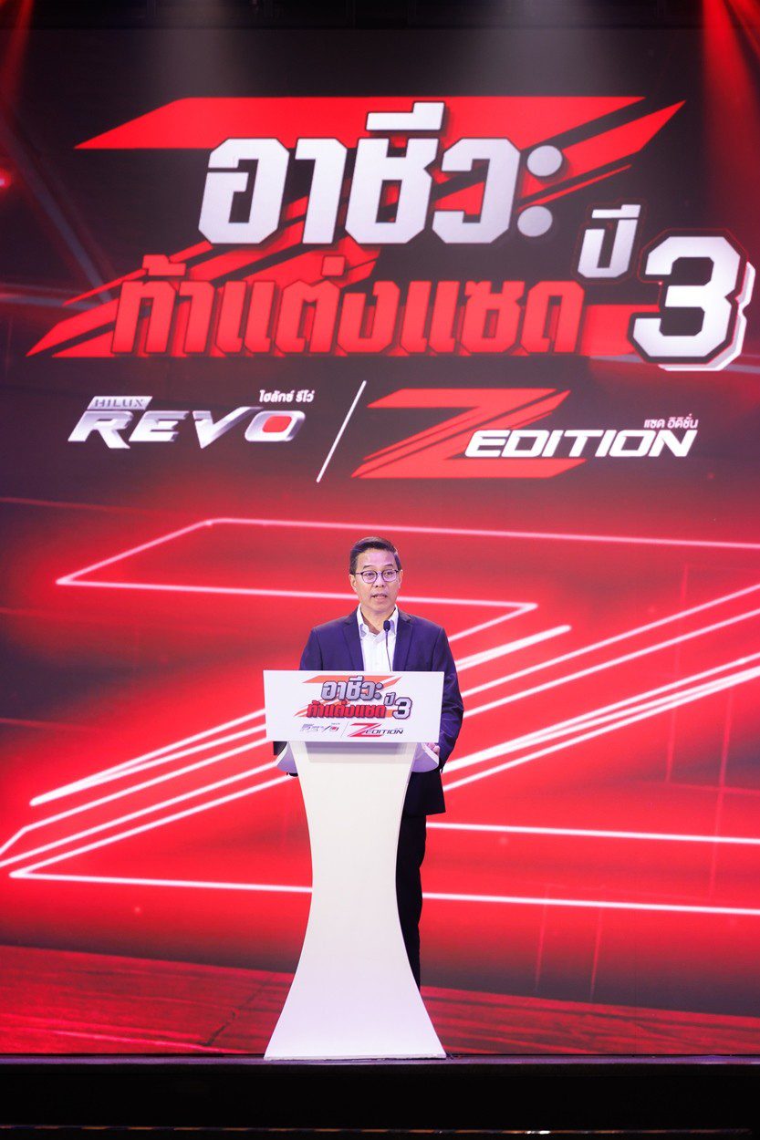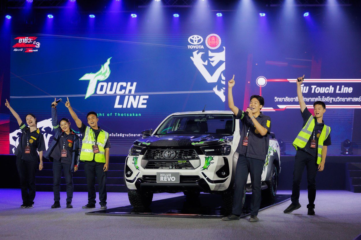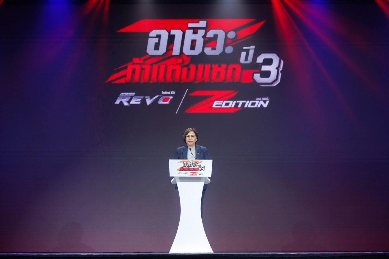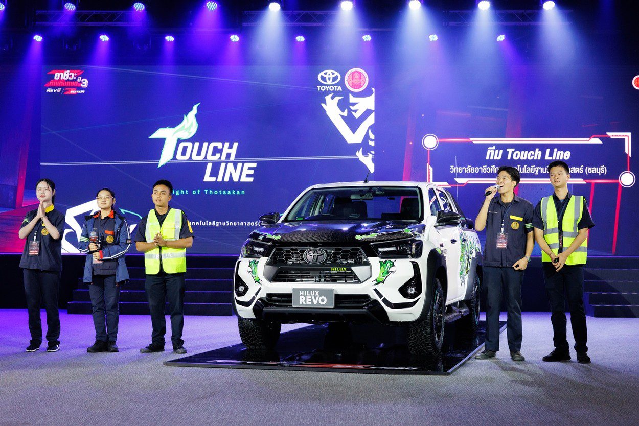 นายณัทธร ศรีนิเวศน์ ผู้ช่วยกรรมการผู้จัดการใหญ่ บริษัท โตโยต้า มอเตอร์ ประเทศไทย จำกัด พร้อมด้วย นางเบญจวรรณ ปกป้อง ผู้อำนวยการสำนักความร่วมมือ สำนักงานคณะกรรมการการอาชีวศึกษา กระทรวงศึกษาธิการ นายศุภชัย แพร่พิพัฒน์มงคล ประธานชมรมผู้แทนจำหน่ายฯ เขตภาคตะวันออก ร่วมมอบรางวัลผู้ชนะการประกวดแต่งรถกระบะไฮลักซ์ รีโว่ แซด อิดิชั่น ภายใต้กิจกรรม “อาชีวะ ท้าแต่งแซด กับ ไฮลักซ์ รีโว่ แซด อิดิชั่น ปี 3” เมื่อวันที่ 11 มีนาคม 2569 ณ TOYOTA ALIVE บางนา กม.3