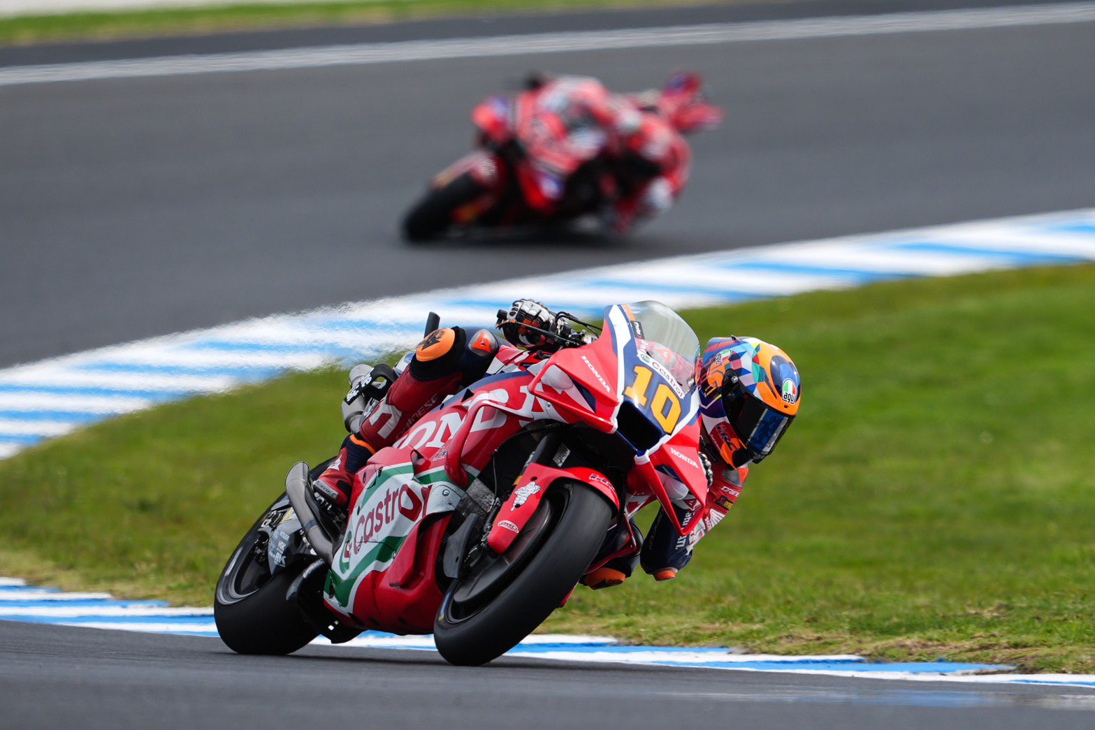 “ลูก้า มารินี” นักบิดอิตาเลียนจาก ฮอนด้า เอชอาร์ซี ควบรถแข่ง Honda RC213V ทะยานเข้าป้ายท็อป 8 ผงาดคว้าแต้มจาก สปรินต์เรซ ในศึก โมโตจีพี 2025 สนาม 19 รายการ ออสเตรเลียน กรังด์ปรีซ์ ขณะ “ก้อง” สมเกียรติ จันทรา ออกตัวจากกริด 21 บิดเข้าป้ายอันดับ 18 เมื่อวันเสาร์ที่ผ่านมา ที่ สนามฟิลลิป ไอส์แลนด์ ประเทศออสเตรเลีย