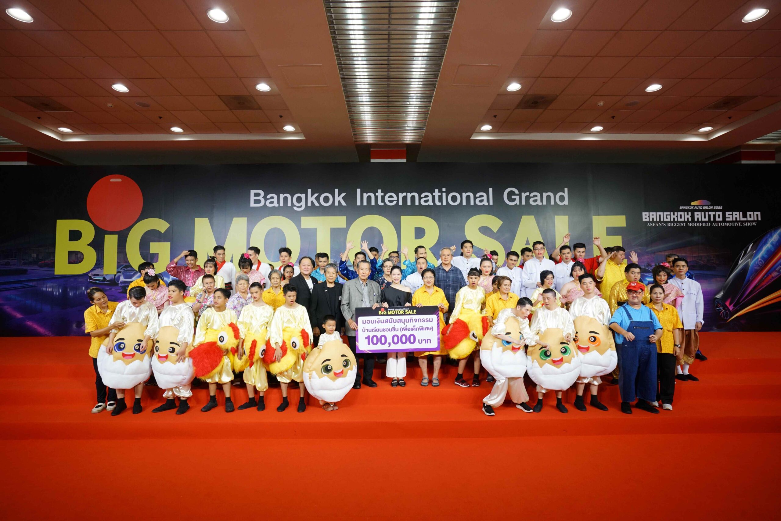 คุณจิตต์จรวย ขันมณี รองประธานกรรมการบริหาร บริษัท ยานยนต์สแควร์ กรุ๊ป จำกัด ผู้แทนของ คุณมนต์สวรรค์ ขันมณี ประธานใหญ่การจัดงาน “BIG MOTOR SALE 2025” มอบเงินสนับสนุน 100,000 บาท แก่ ดร.ธมล เสรีวงศ์ ประธานมูลนิธิเพื่อการพัฒนาเด็กที่มีความต้องการพิเศษ เพื่อนำไปใช้ในกิจกรรมเสริมสร้างพัฒนาการของน้องๆ บ้านเรียนชวนชื่น (เพื่อเด็กพิเศษ) ณ ศูนย์นิทรรศการและการประชุมไบเทค บางนา