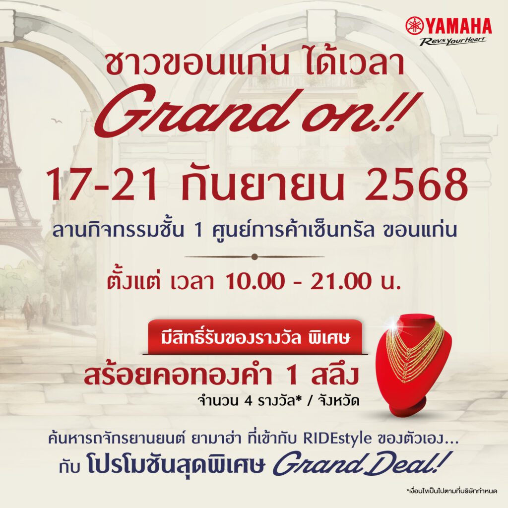 ชาวขอนแก่นและจังหวัดใกล้เคียง สามารถมาร่วมสัมผัสประสบการณ์ครั้งนี้ ได้ที่ลานกิจกรรมโปรโมชัน ชั้น 1 ศูนย์การค้าเซ็นทรัล ขอนแก่น ระหว่างวันที่ 17 – 21 กันยายน 2568 นี้ ติดตามรายละเอียดเพิ่มเติมได้ที่ Facebook: Yamaha Society Thailand หรือที่ www.yamaha-motor.co.th