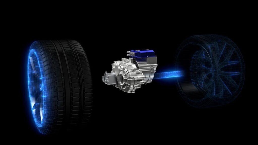 ชุดขับเคลื่อนไฟฟ้า (Electric Drive Unit) ที่อยู่ระหว่างการพัฒนาเพื่อเตรียมพร้อมสำหรับการส่งมอบให้กับผู้ผลิตรถยนต์ในอนาคต ด้วยโครงสร้างแบบพิเศษ 3-in-1 ที่ผสานมอเตอร์ อินเวอร์เตอร์ และระบบเกียร์เข้าไว้ในชุดเดียวกัน ทำให้สามารถให้กำลังขับที่สูง ในขณะที่ตัวของเครื่องยนต์มีน้ำหนักเบา และมีขนาดที่กะทัดรัด โดยระบบ e-Axle นี้ออกแบบให้รองรับการใช้งานได้กับรถยนต์หลายประเภท โดยสามารถทำงานกับแรงดันไฟตั้งแต่ 350V ถึง 800V และให้กำลังขับได้สูงสุดถึง 450 kW