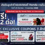 - Digital Coupon สิทธิ์ซื้อรถจักรยานยนต์ฮอนด้าโปรโมชั่นเดียวกับงาน Motor Show กดรับสิทธิ์ในคูปองส่วนลดสำหรับใช้จ่ายภายในงาน My Honda Moto(IOS: https://bit.ly/4urdJ5t Android: https://bit.ly/4b78vEi )