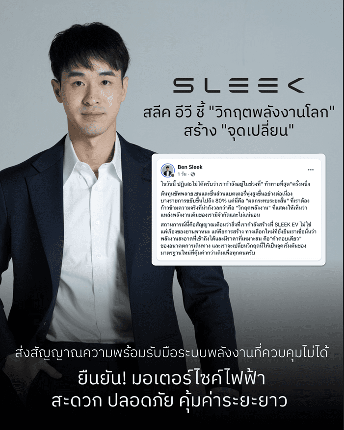 สลีค อีวี ชี้ “วิกฤตพลังงานโลก” สร้าง “จุดเปลี่ยน” ส่งสัญญาณความพร้อมรับมื