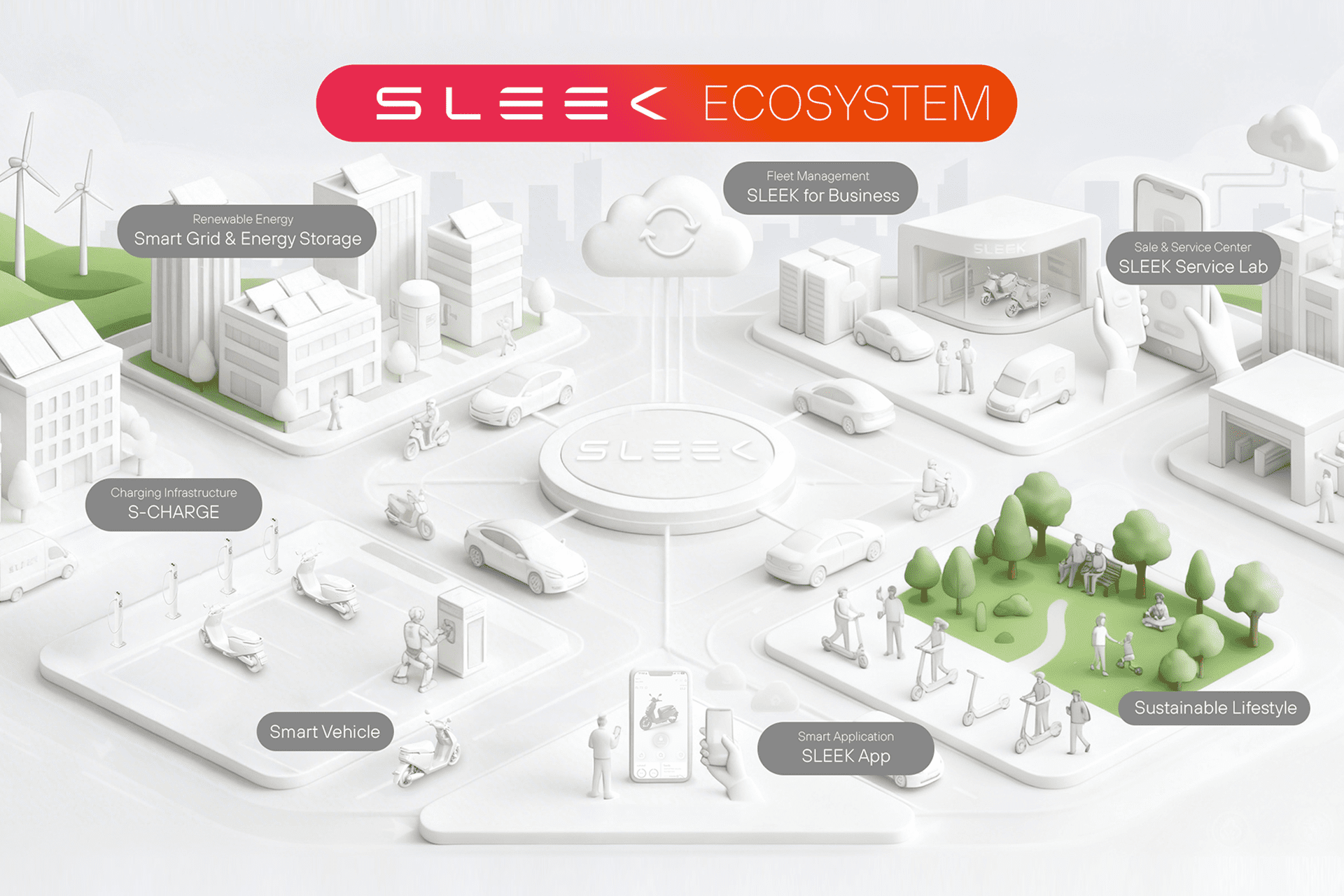 ทั้งนี้ สลีค อีวี ตระหนักดีว่าการตัดสินใจเปลี่ยนมาใช้มอเตอร์ไซค์ไฟฟ้าไม่ใช่แค่เรื่องราคา แต่คือความมั่นใจในระยะยาว บริษัทจึงพัฒนาและขยาย Ecosystem ที่ออกแบบมาเพื่อตอบโจทย์ทุกความกังวล ด้วยเครือข่ายศูนย์บริการที่มีกระจายอยู่ครอบคลุมทั้ง 22 จังหวัด พร้อมทีมช่างที่ผ่านการอบรมมาตรฐานจาก SLEEK EV โดยตรง รองรับทั้งการซ่อมบำรุงทั่วไปและการอัปเดตซอฟต์แวร์ระบบของรถ รวมไปถึงการเร่งสร้าง Ecosystem ที่ครอบคลุมทุกมิติของการเดินทางด้วยพลังงานสะอาด ตั้งแต่ผลิตภัณฑ์ที่ออกแบบเพื่อเมืองไทยโดยเฉพาะ เครือข่าย S-CHARGE ไปจนถึงแอปพลิเคชันที่เชื่อมต่อกับรถแบบเรียลไทม์ พร้อมขยายจุดชาร์จอย่างต่อเนื่องทั่วกรุงเทพฯ และหัวเมืองหลัก โดยมีเป้าหมายให้การชาร์จไฟเป็นเรื่องปกติในทุกที่ที่ผู้ใช้จอดรถ ไม่จำเป็นต้องวางแผนการชาร์จล่วงหน้า