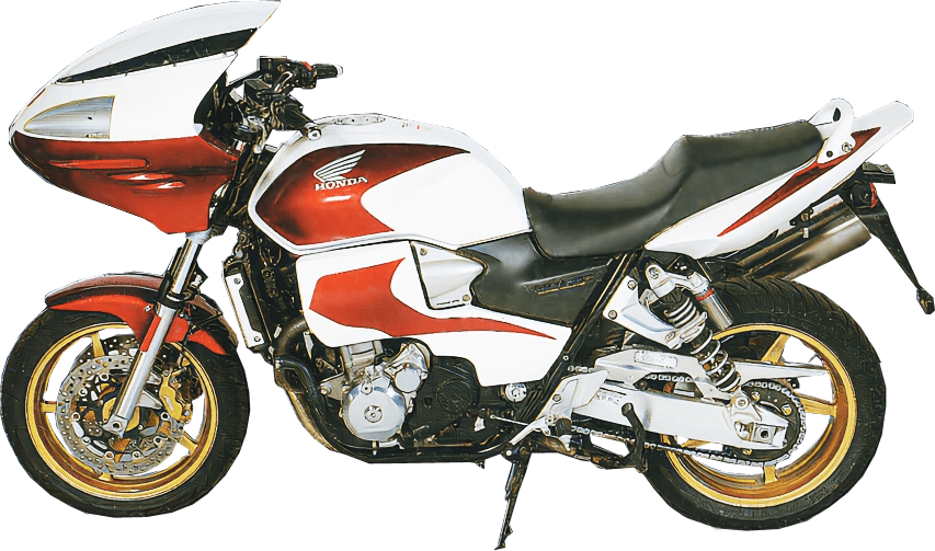 มอเตอร์ไซค์สปอร์ตขนาดกลาง 4 สูบเรียงของ Honda ที่ได้รับความนิยม ถูกนำมาเป็นพื้นฐานสำหรับ ” Cyclone “ ของ คาเมนไรเดอร์หมายเลข 1 (ฮอนโก ทาเคชิ) รูปลักษณ์ภายนอกถูกดัดแปลงให้มีแฟริ่งแบบคลาสสิกแต่มีความล้ำสมัย