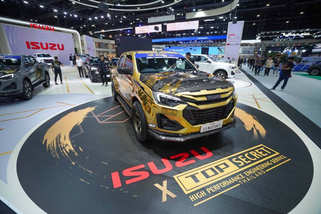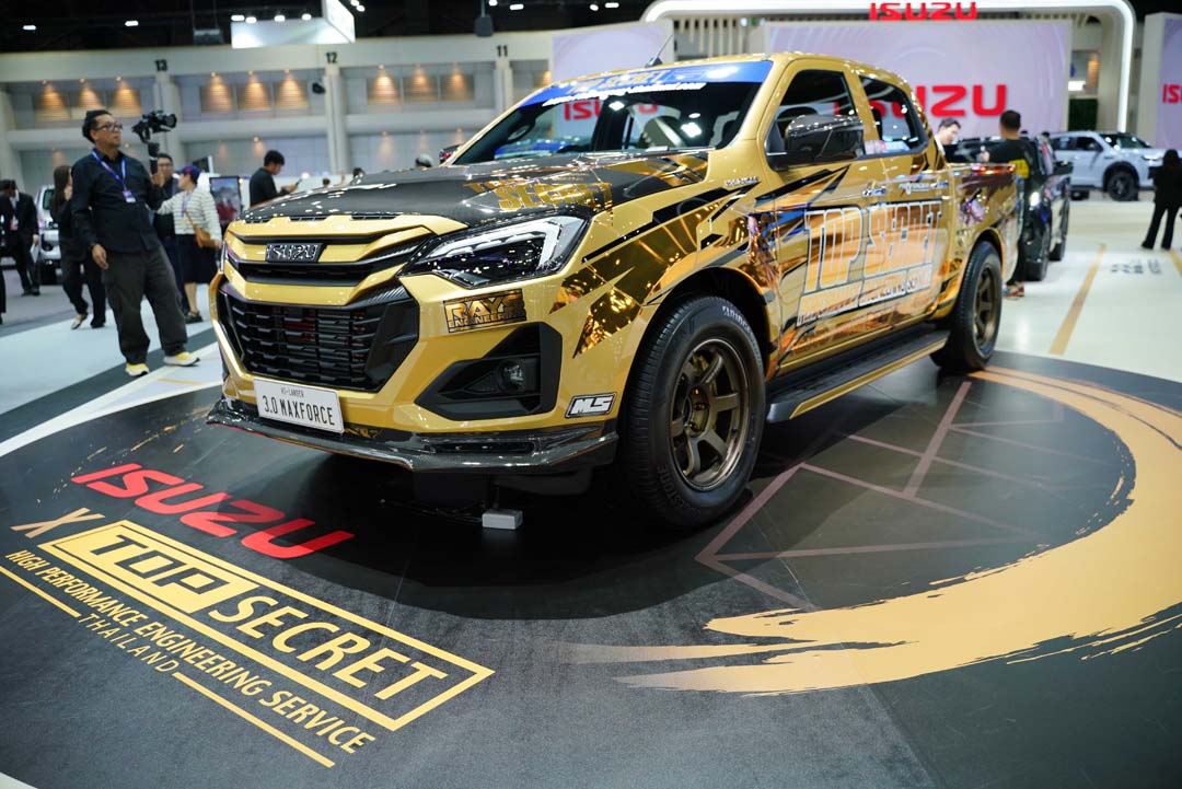 • ISUZU D-MAX HI-LANDER “TOP SECRET X ISUZU D-MAX” ครั้งแรกที่สำนักแต่งรถชื่อดังระดับโลกจากญี่ปุ่น “TOP SECRET” เลือกรถปิกอัพไปแต่งแบบเต็มพิกัด ด้วยชุดแต่งคาร์บอนไฟเบอร์เกรดพรีเมียมรอบคัน เพิ่มความดุดันและมีน้ำหนักเบา แรงเต็มสูบด้วยการปรับแต่งเพิ่มความแรงเครื่องยนต์จากสำนัก ECU Shop เน้นแรงแบบไร้ควัน เพิ่มสมรรถนะช่วงล่างให้รับกับความแรง ด้วยชุดช่วงล่างจาก PROFENDER พร้อมระบบเบรก AP RACING จับคู่กับล้อยอดนิยมตลอดกาล RAYS ENGINEERING VOLK RACING รุ่น TE37 ขนาด 18 นิ้ว จากญี่ปุ่น ยาง BRIDGESTONE ALENZA 001 เสริมอารมณ์สปอร์ตให้กับการขับขี่ พร้อมชุดแต่งภายในคาร์บอนไฟเบอร์เกรดพรีเมียมของ TOP SECRET เบาะรถแข่งคู่หน้า RECARO รุ่น TOM CAT และพวงมาลัยเรซซิ่งของ SARD