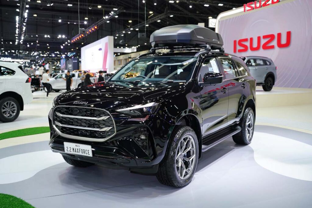 • MU-X “THE NEXT PEAK” รุ่น Ultimate 2.2 Ddi MAXFORCE สีดำบาวาเรียนไมก้า (Bavarian Black Mica) มาพร้อมคอนเซ็ปต์รถครอบครัวเพื่อการท่องเที่ยว พร้อมความปลอดภัยครบครันด้วย ใหม่! กล้องรอบคัน 360° Surround View Camera พร้อมมุมมองใต้ท้องรถเพื่อความแม่นยำในการขับขี่ เพิ่มความอเนกประสงค์ในการเดินทางด้วยชุดคานบนหลังคา THULE รุ่น WINGBAR EDGE เพิ่มพื้นที่ในการจัดเก็บสัมภาระ ด้วยกล่อง THULE FORCE บนหลังคา เสริมความมั่นใจในการเดินทางด้วยล้อ LENSO รุ่น JAGER DYNA พร้อมยาง BRIDGESTONE DUELER AT002 ขนาด 265/50R20