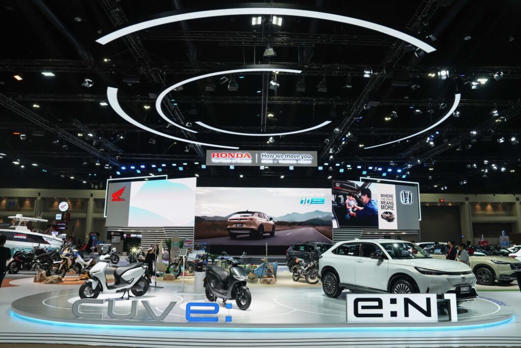 - Innovative Zone จัดแสดงผลิตภัณฑ์ขับเคลื่อนพลังงานไฟฟ้า 100% นำโดย “Honda e:N1” รถ SUV พลังงานไฟฟ้า 100% รุ่นแรกที่ฮอนด้าเปิดให้จอง และจำหน่ายอย่างเป็นทางการให้ลูกค้าทั่วไปได้เป็นเจ้าของแล้ววันนี้ และ “New Honda CUV e:” รถจักรยานยนต์ไฟฟ้า ที่พร้อมเปิดให้เช่าใช้บริการสำหรับผู้ที่สนใจ โดยสามารถลงทะเบียนรับสิทธิ์เป็นผู้เช่าในราคาพิเศษเฉพาะในงาน ฯ เท่านั้น