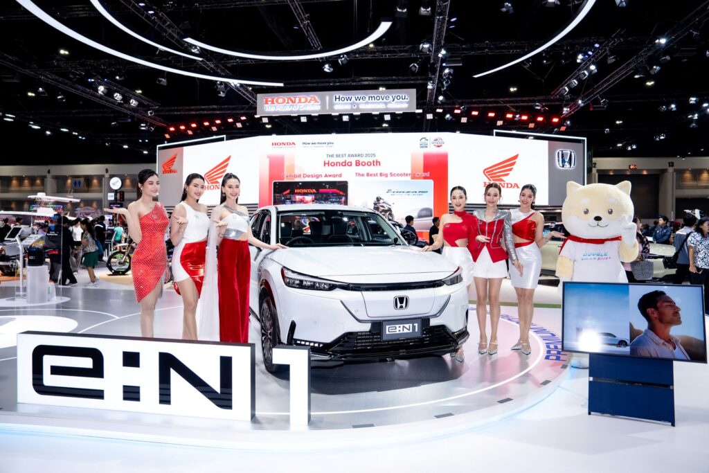 ฮอนด้า โดยบริษัท ฮอนด้า ออโตโมบิล (ประเทศไทย) จำกัด นำโดย คุณรัชนี จิรถาวรกุล ผู้ช่วยผู้จัดการทั่วไปส่วนการตลาดและการสื่อสารแบรนด์ และบริษัท ไทยฮอนด้า จำกัด นำโดย ดร.อารักษ์ พรประภา (ที่ 6 จากซ้าย) ประธานบริษัท ร่วมเป็นตัวแทนรับมอบรางวัลพิเศษ THE BEST AWARD 2025 ในงานบางกอก อินเตอร์เนชั่นแนล มอเตอร์โชว์ ครั้งที่ 46 โดยฮอนด้า คว้า 2 รางวัล ได้แก่ รางวัลดีไซน์บูทยอดเยี่ยม (Exhibit Design Award) และรางวัลบิ๊กสกู๊ตเตอร์ยอดเยี่ยม (The Best Big Scooter Award) โดยได้รับเกียรติจาก ดร.ปราจิน เอี่ยมลำเนา ประธานจัดงานบางกอก อินเตอร์เนชั่นแนล มอเตอร์โชว์ 2025 และคุณจาตุรนต์ โกมลมิศร์ รองประธานจัดงานฯ เป็นผู้มอบรางวัล