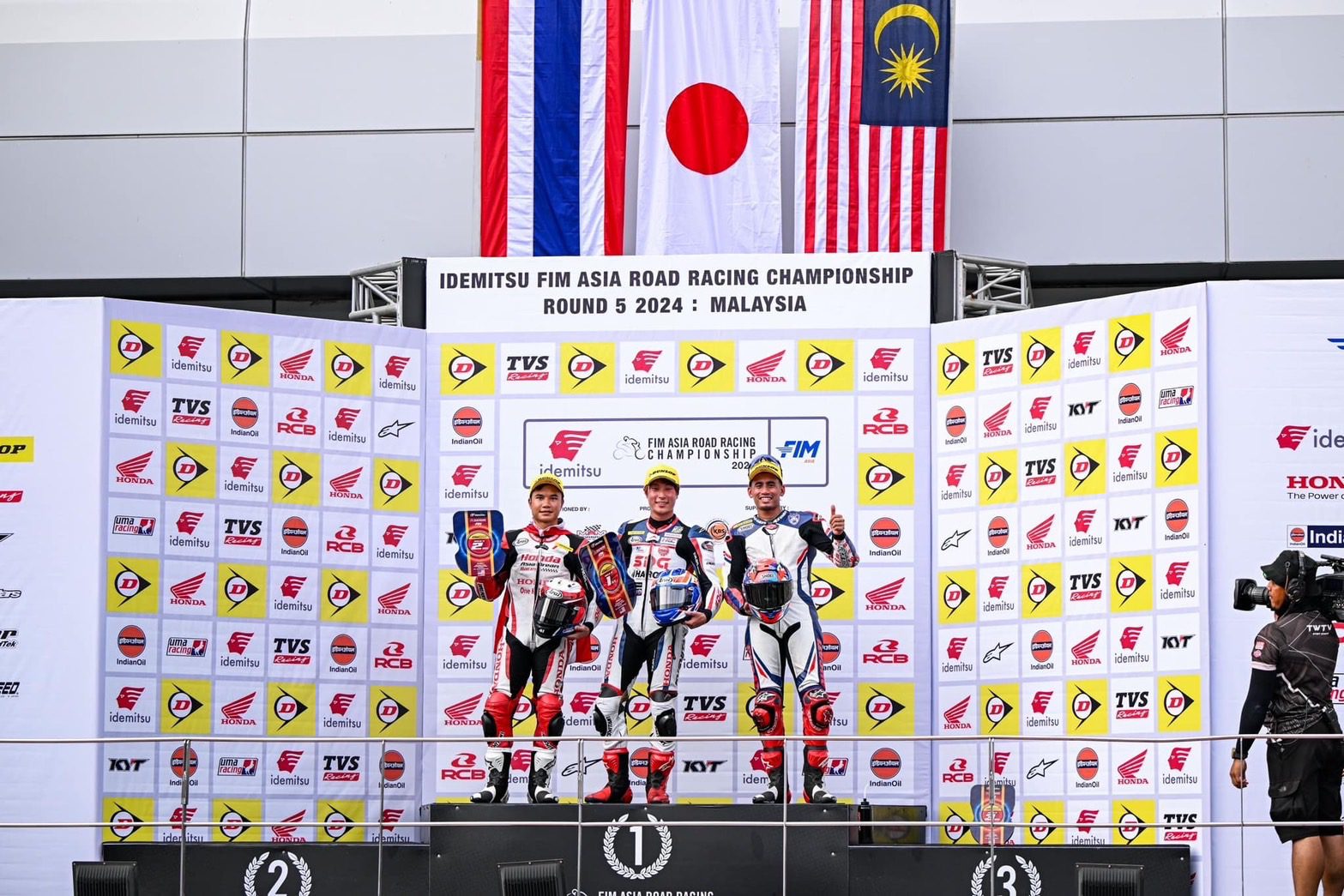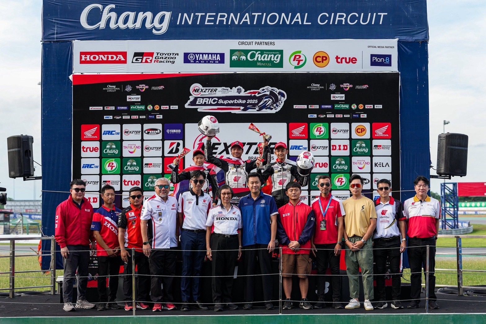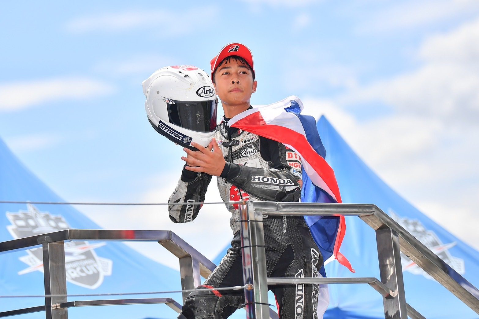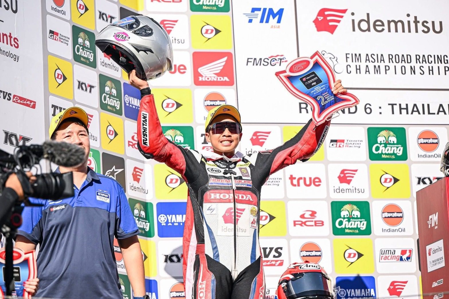 “อุ้ม” นพรุธพงษ์ บุญประเวศ ดาวรุ่งวัย 17 ปี สร้างผลงานอย่างโดดเด่นในการแข่งขันด้วยสิทธิ์ไวลด์การ์ด เขาพารถแข่ง Honda CBR250RR ขึ้นไปต่อสู้ในกลุ่มหน้ากับคู่แข่งที่ผ่านการแข่งขันระดับโลกมาแล้วอย่างสุดมันส์ ก่อนจะคว้าโพเดียมมาได้ทั้ง 2 เรซ นั่นคืออันดับ 3 จากเรซแรก และอันดับ 2 จากเรซสุดท้าย ถือเป็นการแจ้งเกิดอย่างเต็มตัว ส่วนทีมเมทอย่าง “เฟอร์” ปัญจรุจน์ จิตวิรุฬห์ฉัตร โดดเด่นไม่แพ้กันด้วยการคว้าอันดับ 6 และอันดับ 5 มาครอง