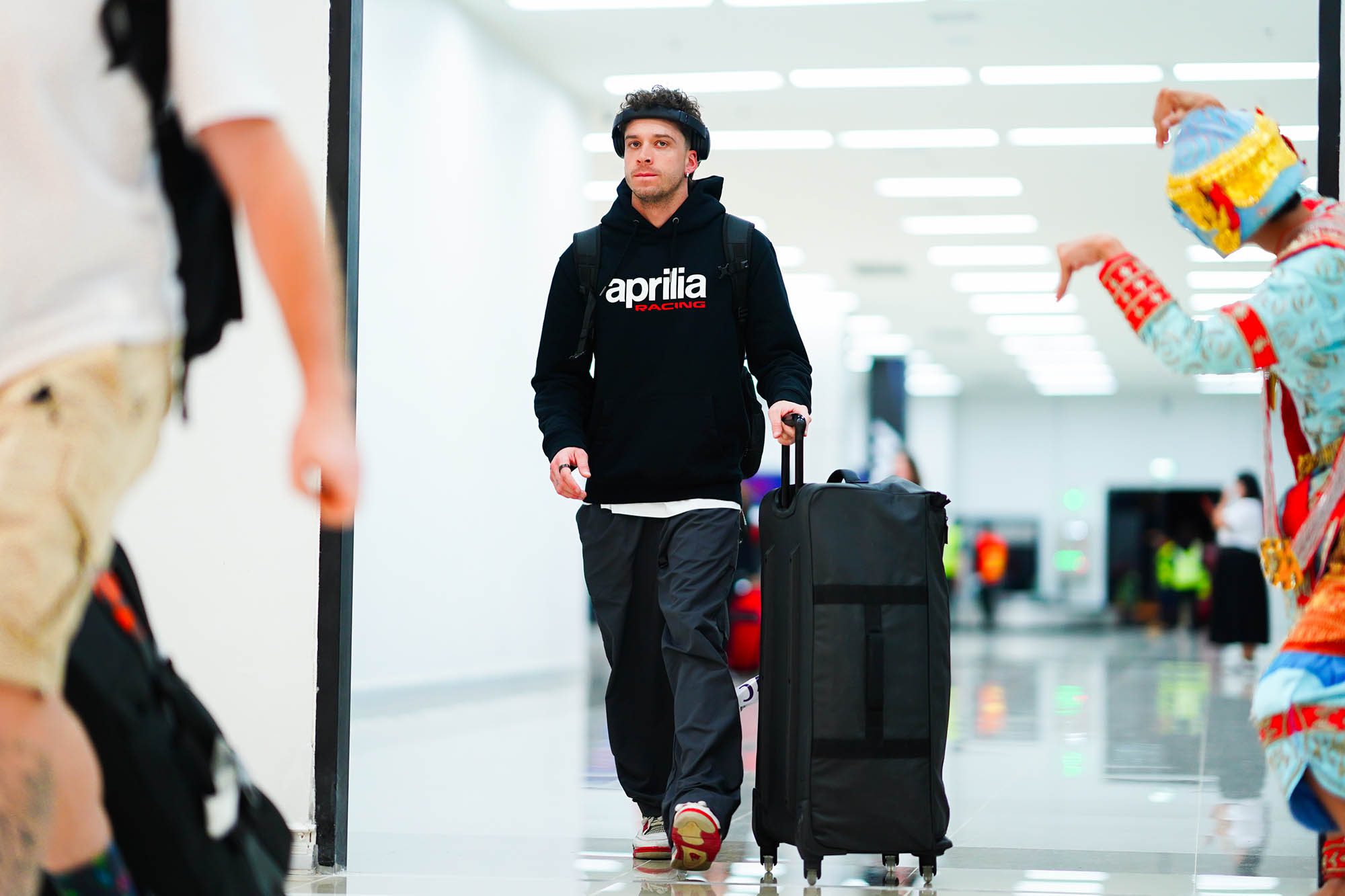 นักบิดโมโตจีพี ทยอยเดินทางสู่ประเทศไทย ในวันพุธที่ 18 กุมภาพันธ์ 2569 โดยเดินทางต่อไปยังจังหวัดบุรีรัมย์ ด้วยเที่ยวบิน TG8004 ถึงท่าอากาศยานบุรีรัมย์ เวลา 19.35 น. เพื่อเตรียมทำศึกจักรยานยนต์ทางเรียบชิงแชมป์โลก รายการ “PT Grand Prix of Thailand 2026” ที่สนามช้าง อินเตอร์เนชั่นแนล เซอร์กิต จังหวัดบุรีรัมย์