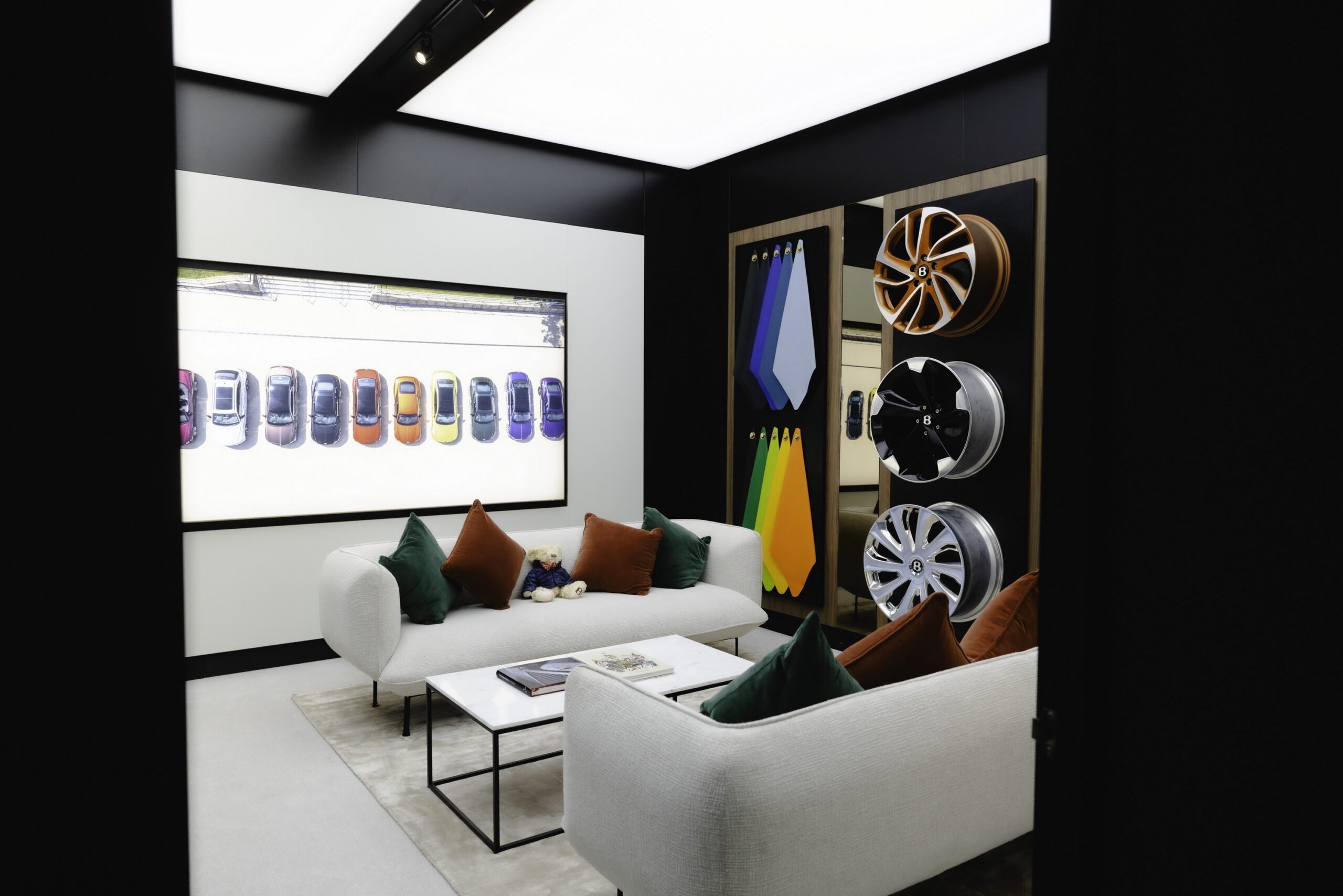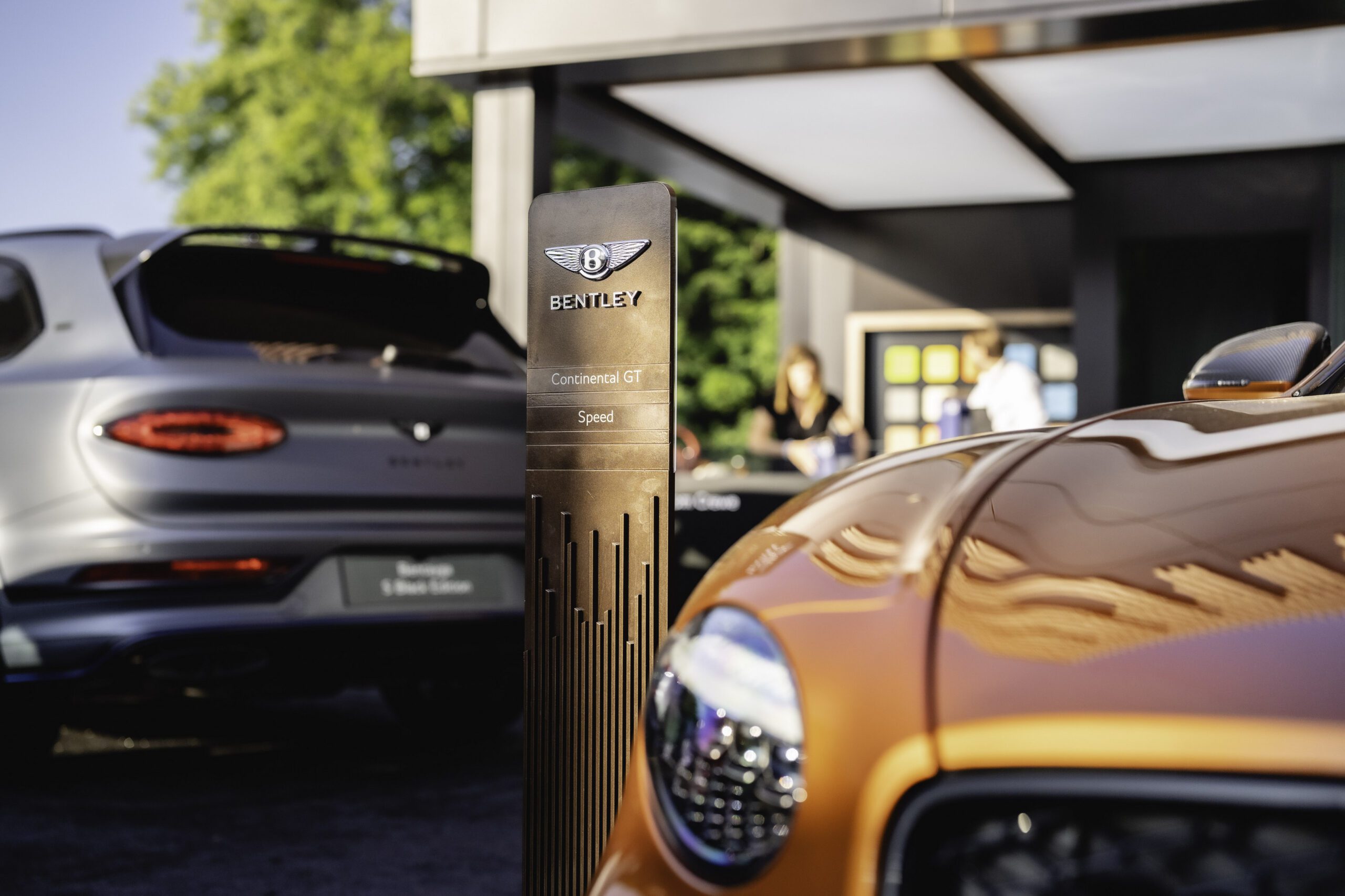 บริเวณด้านหน้ามีการจัดแสดงยนตรกรรมรุ่นล่าสุด 3 รุ่นให้ผู้เข้าชมงานได้สัมผัสอย่างใกล้ชิดอย่างรุ่น Continental GT Speed ในสีส้ม Orange Flame ที่โดดเด่นด้วยชุดแต่งคาร์บอน Styling Specification ใหม่ พร้อมด้วยท่อไอเสียไทเทเนียมสไตล์สปอร์ต Akrapovic ที่เพิ่งเปิดตัวล่าสุด ส่วนรุ่น Flying Spur Black Edition เผยโฉมในเฉดสีดำที่โดดเด่นสะดุดตากับคาลิปเปอร์เบรกสีส้ม Mandarin สีสันสดใสที่เผยให้เห็นด้านในของล้ออัลลอยด์สีดำขนาด 22 นิ้ว สำหรับ Bentayga S Black Edition มาในเฉดสีเทาแบบซาติน Storm Grey สุดร่วมสมัยที่ไม่เพียงแต่แสดงให้เห็นถึงทักษะของช่างเทคนิค ณ โรงทำสีในเมืองครูว์ ซึ่งใช้เวลากว่า 55 ชั่วโมงในการพ่นสีแบบซาตินด้วยมือแล้ว แต่ยังมาพร้อมกับชุดแต่งในเฉดสีฟ้า Klien Blue เฉพาะในรุ่น Black Edition อีกด้วย