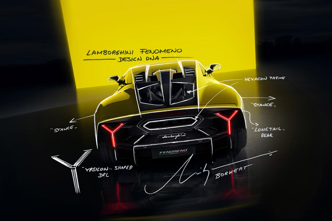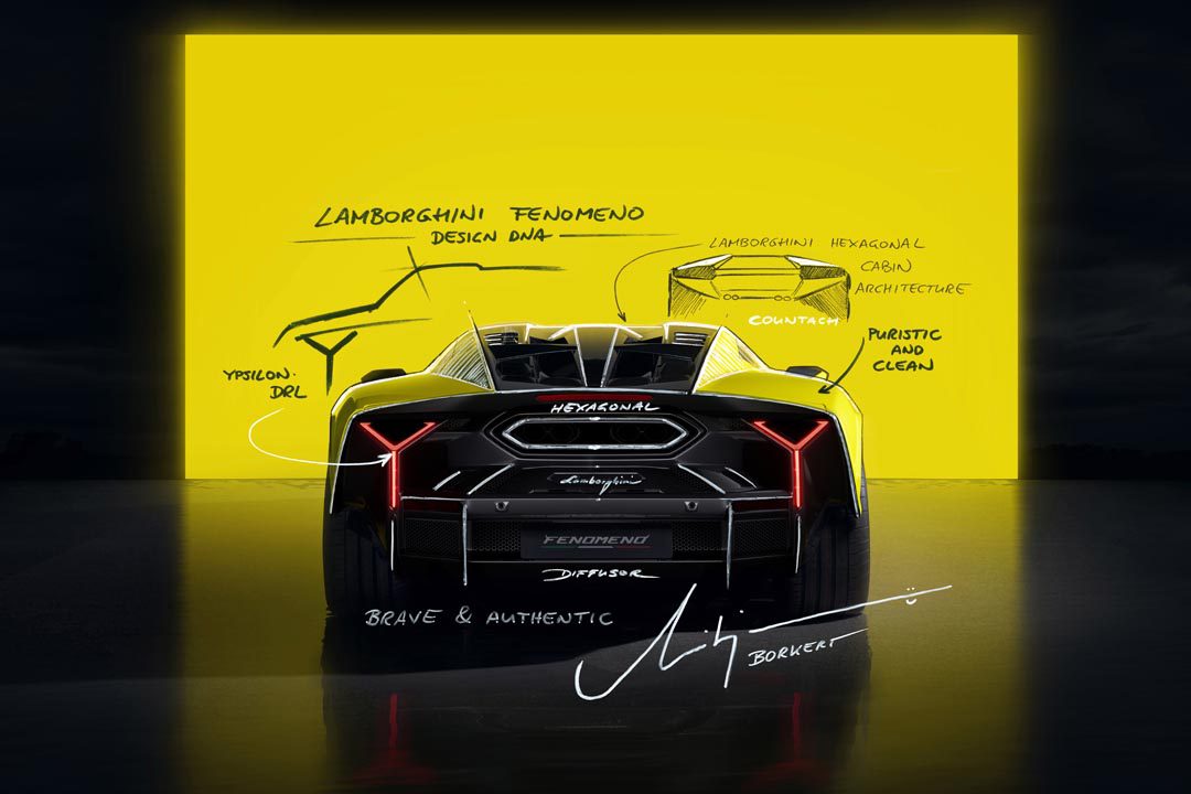 มร.มิตจา โบร์เคิร์ต ผู้อำนวยการฝ่ายการออกแบบ ลัมโบร์กินี กล่าวว่า “Fenomeno นับเป็นการกำหนดเส้นทางใหม่ที่เป็นต้นฉบับที่แท้จริงในการออกแบบซึ่งมุ่งเน้นการเดินหน้าสู่อนาคตของเรา โดยเราได้สร้างสรรค์งานการออกแบบรถยนต์ที่สง่างามอย่างเหนือระดับ ประณีต และเปี่ยมด้วยเสน่ห์ เปรียบเสมือนยานอวกาศซึ่งผลิตจากคาร์บอนไฟเบอร์ทั้งหมด แต่ยังคงไว้ซึ่งมรดกของเราอย่างเต็มเปี่ยม ราวกับ Fenomeno กำลังบรรเลงท่วงทำนองแห่งดีเอ็นเอในงานออกแบบอันเป็นเอกลักษณ์ของเรา แต่สื่อสารด้วยโทนเสียงและจังหวะที่แตกต่าง เพื่อสร้างสรรค์อีกหนึ่งตำนานอันน่าทึ่งซึ่งอยู่เหนือความคาดหมายอันสูงล้ำ ทั้งของลูกค้าเราและเหล่านักสะสมรถยนต์”