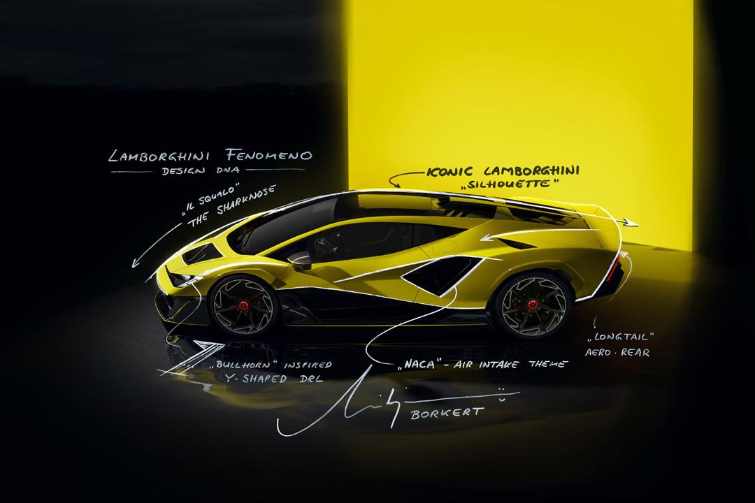 Fenomeno คือการประกาศเจตนารมณ์แห่งงานดีไซน์ (Design Manifesto) ในแบบฉบับดั้งเดิมของลัมโบร์กินี เพื่อยกระดับองค์ประกอบด้านการออกแบบอันโดดเด่นของแบรนด์ให้ก้าวล้ำไปอีกขั้น ซึ่งนอกจากงานดีไซน์อันเป็นเอกลักษณ์และระบบอากาศพลศาสตร์ที่พัฒนาขึ้นโดยเฉพาะ Fenomeno ยังมาพร้อมกับเครื่องยนต์ V12 ที่ทรงพลังที่สุดในประวัติศาสตร์ของลัมโบร์กินี ทำงานผสานกับมอเตอร์ไฟฟ้า 3 ตัวเพื่อมอบกำลังเครื่องรวมถึง 1,080 แรงม้า โดยเครื่องยนต์ V12 แบบดูดอากาศเข้าตามธรรมชาติให้กำลังเครื่องสูงสุดเป็นประวัติการณ์ที่ 835 แรงม้าและมอเตอร์ไฟฟ้าทั้ง 3 ตัวจะให้กำลังสูงสุด 245 แรงม้า ทำให้ Fenomeno คือนิยามแห่งขุมพลังที่สูงเกินขีดจำกัดซึ่งยังไม่เคยปรากฏมาก่อน ผู้ขับขี่ยังจะได้สัมผัสกับโซลูชันทางเทคนิคขั้นสูงที่ติดตั้งมาในลัมโบร์กินีเป็นครั้งแรก อาทิ เซ็นเซอร์ 6D และระบบเบรกคาร์บอนเซรามิก CCM-R Plus