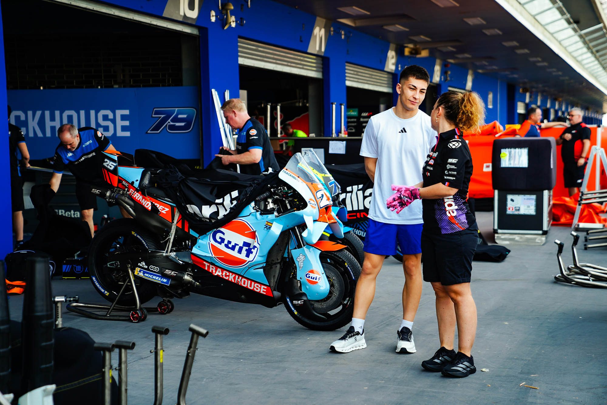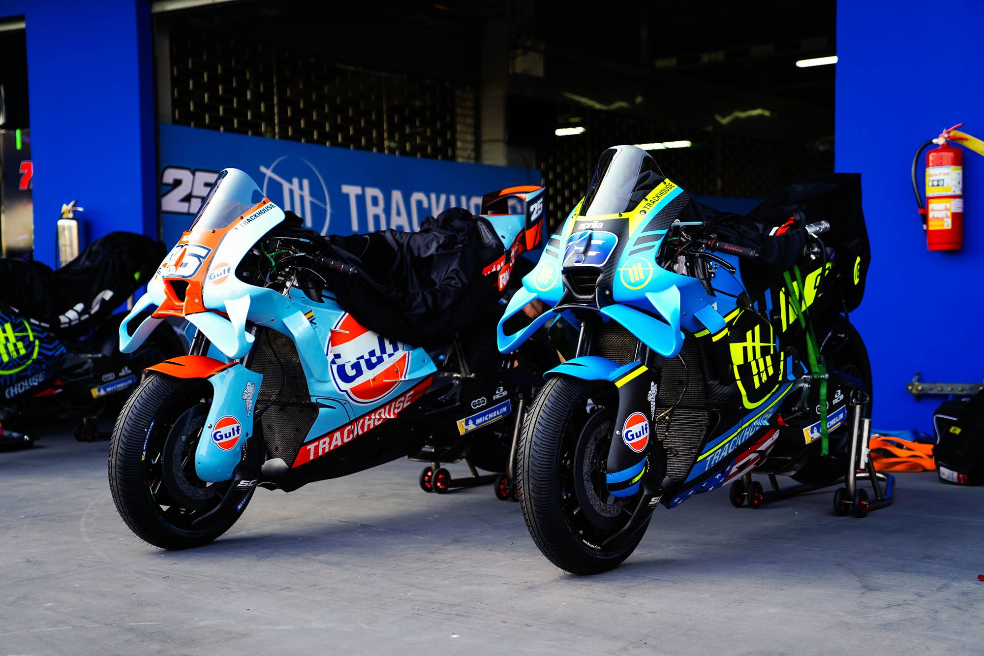 ค่ายที่ยกระดับรถแข่งขึ้นมาอย่างน่าสนใจอย่าง อพริเลีย เรซซิ่ง ถูกจับตามองว่าจะสามารถสร้างปัญหาให้กับ ดูคาติ ได้ไม่น้อย โดยรถแข่ง RS-GP ของพวกเขาทำผลงานได้ยอดเยี่ยมในปีที่ผ่านมา จากชัยชนะของ “มาร์โก เบซเซ็คคี” นักบิดอิตาเลียนจากทีมโรงงาน ซึ่งในปีนี้ “ฮอร์เก มาร์ติน” กลับมาทดสอบกับทีมในไทยได้แล้ว ขณะที่ “ราอูล เฟร์นันเดซ” หนึ่งในผู้ชนะของปีที่ผ่านมาจาก แทร็คเฮาส์ เรซซิ่ง จะจับคู่กับ “ไอ โอกูระ” นักบิดญี่ปุ่นลงสนามในปีนี้