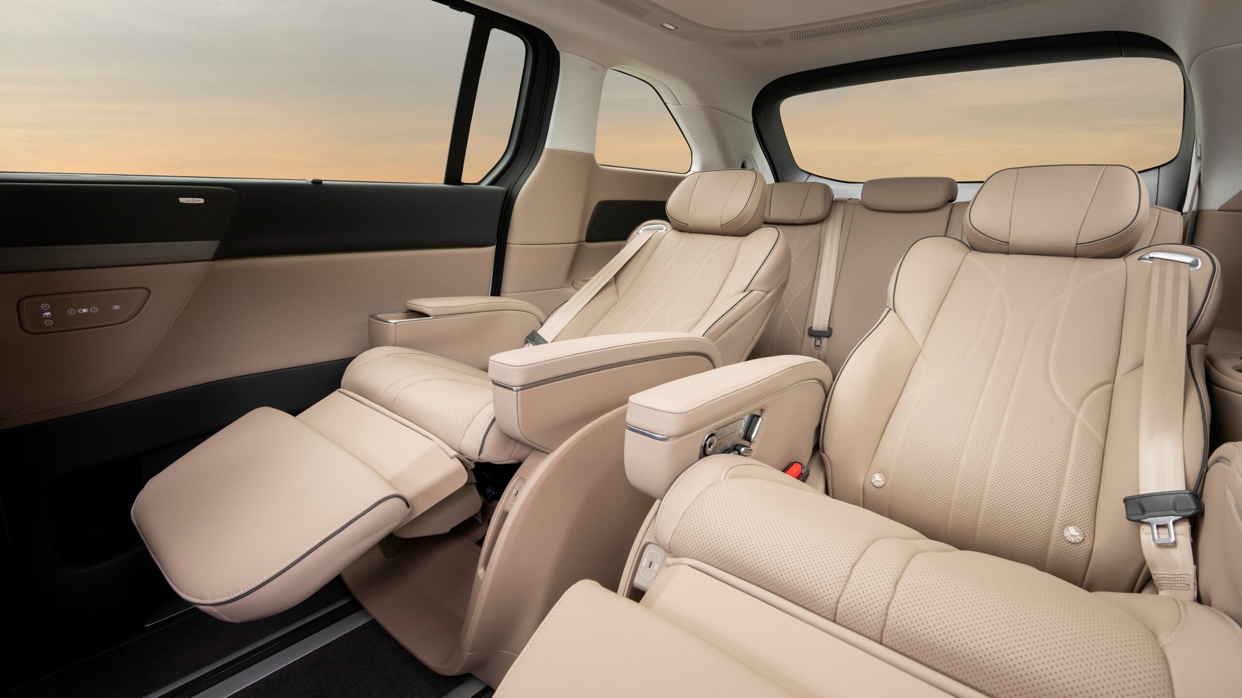รถตู้ไฟฟ้าทรงสปอร์ตอัจฉริยะ ที่มาพร้อมเฉดสีภายใน Moon Shadow Coffee และ Meteorite Black นั่งสบายด้วยเบาะแถวที่สองแบบโซฟา พร้อมฟังก์ชั่น Zero-Gravity ปรับไฟฟ้าได้ 14 ทิศทาง และช่องทางเดินระหว่างเบาะแถวที่สอง รวมถึงที่ชาร์จแบบไร้สาย หนึ่งเดียวในคลาสที่เบาะแถวสามสามารถพับราบด้วยไฟฟ้าเพียงหนึ่งสัมผัส และเทคโนโลยีเลี้ยว 4 ล้อ รัศมีวงเลี้ยวเพียง 5.4 เมตร นับว่าเป็นรถตู้ไฟฟ้าที่คล่องตัวที่สุดเท่าที่เคยมีมา อีกทั้งยังผสานการขับเคลื่อนด้วยเทคโนโลยีแบตเตอรี่ 800 โวลต์ ที่สามารถชาร์จไฟจาก 10%–80% ได้ในเวลาเพียง 20 นาที รองรับความเร็วในการชาร์จสูงสุดถึง 317 กิโลวัตต์ แบตเตอรี่ NCM ขนาด 101.5 กิโลวัตต์ ชาร์จไฟเต็มขับได้ไกลสุด 690 กิโลเมตร (NEDC)