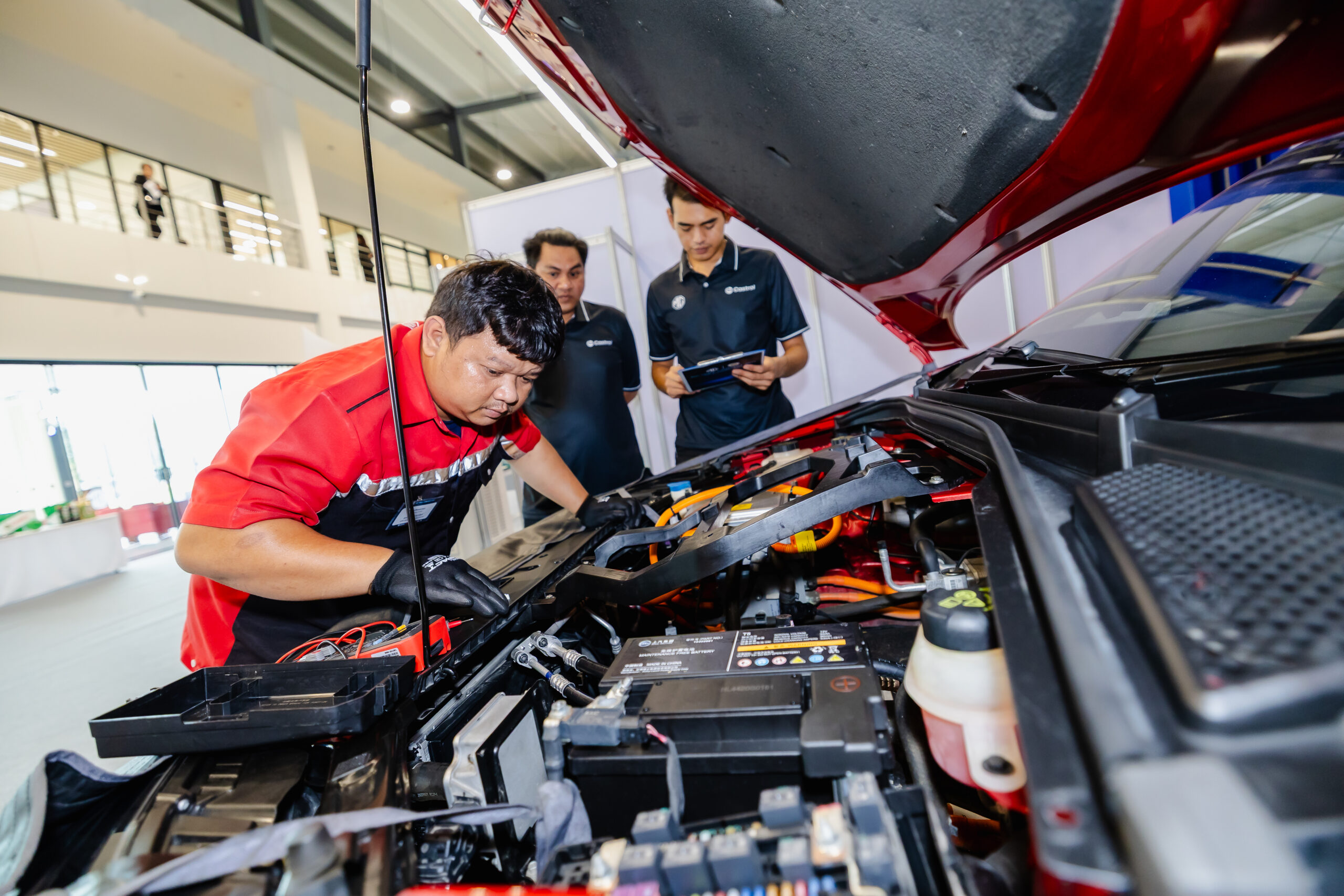 พร้อมกันนี้ ยังมีการพัฒนาศักยภาพผู้จำหน่าย ทีมขาย และทีมบริการอย่างรอบด้าน และการนำเทคโนโลยีมาใช้ตอบสนองบริการหลังการขาย ซึ่งเราได้เตรียมระบบ e-Workshop เพื่อเชื่อมต่อข้อมูลกับผู้จำหน่ายสำหรับติดตามงานบริการแบบเรียลไทม์ ซึ่งจะเพิ่มประสิทธิภาพการทำงาน ลดขั้นตอนการตรวจสอบ รองรับการเก็บข้อมูลในระยะยาว และให้การบริการที่สมบูรณ์แบบ โดยจะเริ่มใช้งานกับผู้จำหน่ายในเขตกรุงเทพฯ และปริมณฑล และจะขยายสู่ศูนย์บริการทั่วประเทศภายในสิ้นปีนี้ รวมถึงการทำการนัดหมายเข้าศูนย์บริการและแจ้งสถานะการบริการแบบเรียลไทม์ผ่านระบบ LINE OA เพื่อเพิ่มความสะดวกให้ลูกค้า โดยมีแผนเริ่มใช้งานในช่วงกลางปีนี้ เพื่อยกระดับประสบการณ์ลูกค้าแบบ End-to-End