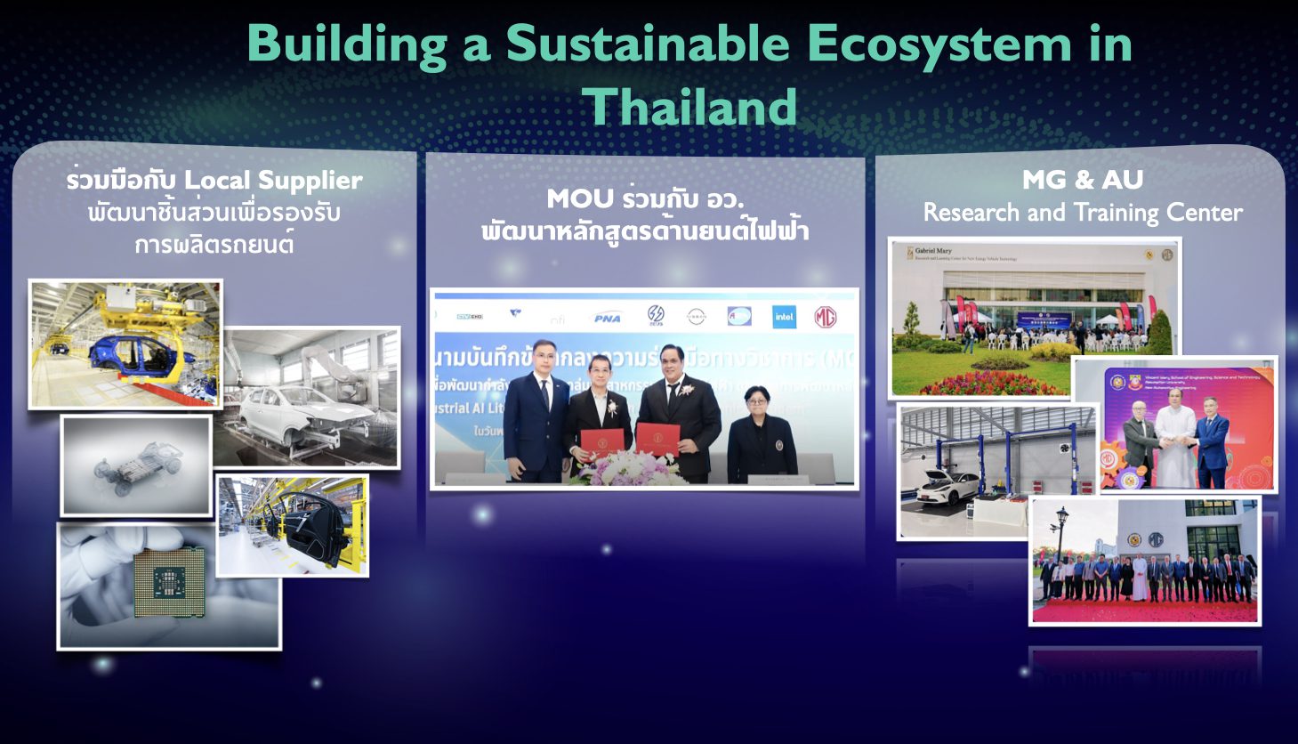 นอกจากงานบริการแล้ว เอ็มจี ยังให้ความสำคัญกับการบริหารจัดการอะไหล่ด้วยระบบสั่งด่วนภายใน 24 ชั่วโมง ซึ่งปัจจุบันมีอัตราจ่ายอะไหล่ครั้งแรกสูงถึง 99.38% ช่วยลดเวลารถค้างซ่อมและสร้างความพึงพอใจให้ลูกค้า ได้อย่างเป็นรูปธรรม นอกจากนี้ เอ็มจี ยังจะให้ความร่วมมือกับหน่วยงานภายนอก โดยเฉพาะสถาบันการศึกษาชั้นนำ อาทิ มหาวิทยาลัยอัสสัมชัญ ด้วยการจัดตั้งศูนย์วิจัยยานยนต์และการเรียนรู้ยานยนต์ไฟฟ้าแบบครบวงจร ในการร่วมกันสร้างและพัฒนาบุคลากรที่มีคุณภาพเข้าสู่วงการยานยนต์ไทยอย่างต่อเนื่อง เอ็มจี เชื่อว่าความสำเร็จของแบรนด์ในระยะยาว จะเกิดจากมาตรฐานที่สม่ำเสมอทั่วประเทศ ทั้งสินค้า บริการ และระบบสนับสนุนต่าง ๆ เพื่อให้ เอ็มจี เติบโตไปพร้อมกับลูกค้าและอุตสาหกรรมยานยนต์ไทยอย่างมั่นคงและยั่งยืน”