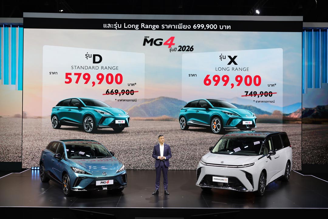 มร. ซู๋ว์ หยิ่น กรรมการผู้จัดการ บริษัท เอ็มจี เซลส์ (ประเทศไทย) จำกัด กล่าวว่า “นอกจากการปรับอุปกรณ์ให้รถรุ่นปัจจุบันมีความคุ้มค่ามากยิ่งขึ้นแล้ว เอ็มจี ยังคงตอกย้ำความมุ่งมั่นในการดูแลลูกค้าในระยะยาว โดยรถทั้ง 2 โมเดลใหม่นี้ยังมาพร้อม EV LIFETIME WARRANTY การรับประกันแบตเตอรี่แรงดันสูง ชุดมอเตอร์ขับเคลื่อน และชุดควบคุมมอเตอร์ขับเคลื่อนตลอดอายุการใช้งาน เพื่อให้ลูกค้าได้สัมผัสประสบการณ์การขับขี่ที่ผสานเทคโนโลยีใหม่ ๆ ที่ให้ชีวิตสะดวกสบายมากยิ่งขึ้น พร้อมมอบความมั่นใจในการใช้งานรถยนต์ไฟฟ้าได้อย่างเต็มประสิทธิภาพในระยะยาว สำหรับผู้ที่สนใจสามารถสัมผัสและทดลองขับ NEW MG MAXUS 9 รุ่น V+ และ NEW MG4 MY2026 พร้อมยนตรกรรม เอ็มจี รุ่นอื่น ๆ และรับข้อเสนอพิเศษ ได้ที่บูธ เอ็มจี หมายเลข A08 ภายในงาน MOTOR SHOW 2026 อาคารชาเลนเจอร์ 2 อิมแพ็ค เมืองทองธานี ระหว่างวันที่ 25 มีนาคม 2569 ถึง 5 เมษายน 2569 หรือ โชว์รูม เอ็มจี ทั้ง 125 แห่ง ทั่วประเทศ และเตรียมพบกับ MG IM5 ที่มาพร้อมบทบาทการเป็น The 1st Premium Intelligent e-Sedan ในวันที่ 24 มีนาคม 2569 ตั้งแต่เวลา 14.20 น. เป็นต้นไป”