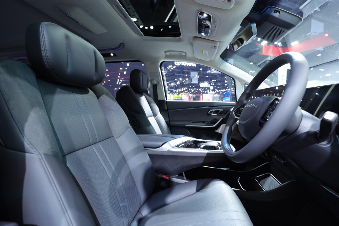 สำหรับ NEW MG MAXUS 9 รุ่น V+ ได้รับการอัปเกรดอุปกรณ์เพิ่มสุนทรียภาพ และความสะดวกสบายให้รองรับการใช้งานของกลุ่มนักธุรกิจ รวมถึงกลุ่มครอบครัวยุคใหม่ บนแนวคิด “THE MAX OF US สุขเต็มแม็กซ์ไปด้วยกัน” ตอบรับกับความต้องการรถ e-MPV ที่เพียบพร้อมด้วยเทคโนโลยี โดยยังคงดีไซน์ภายนอกที่เรียบหรู และเพิ่มเติมความสุนทรีย์ภายห้องโดยสารด้วยหน้าจอ DUAL TOUCHSCREEN ขนาด 12.3 นิ้ว จำนวน 2 จอเชื่อมต่อกัน ซึ่งใหญ่ที่สุดในคลาส ซึ่งมีความคมชัดระดับ HD และลำโพง JBL จำนวน 12 ตัว มาพร้อมหน้าจอแสดงข้อมูลการขับขี่ขนาด 10.25 นิ้ว ผู้โดยสารสัมผัสได้ถึงความโปร่ง โล่ง ด้วยหลังคา SUNROOF สำหรับผู้โดยสารตอนหน้า และ PANORAMIC SUNROOF สำหรับผู้โดยสารตอนหลัง สะดวกสบายด้วยเบาะนั่งแถวที่สองแบบ VIP SEAT ที่มาพร้อมระบบนวด ระบบปรับอุณหภูมิ และอุปกรณ์ม่านกันแดดเพื่อให้เหมาะกับสภาพอากาศเมืองไทย เพิ่มความสามารถในการสั่งการฟังก์ชันต่าง ๆ ผ่านระบบปฏิบัติการอัจฉริยะ i-SMART อาทิ ควบคุมการเปิด-ปิดระบบปรับอากาศ และการล็อก หรือปลดล็อกรถจากระยะไกล โดย NEW MG MAXUS 9 รุ่น V+ มาพร้อมข้อเสนอพิเศษ ดังนี้