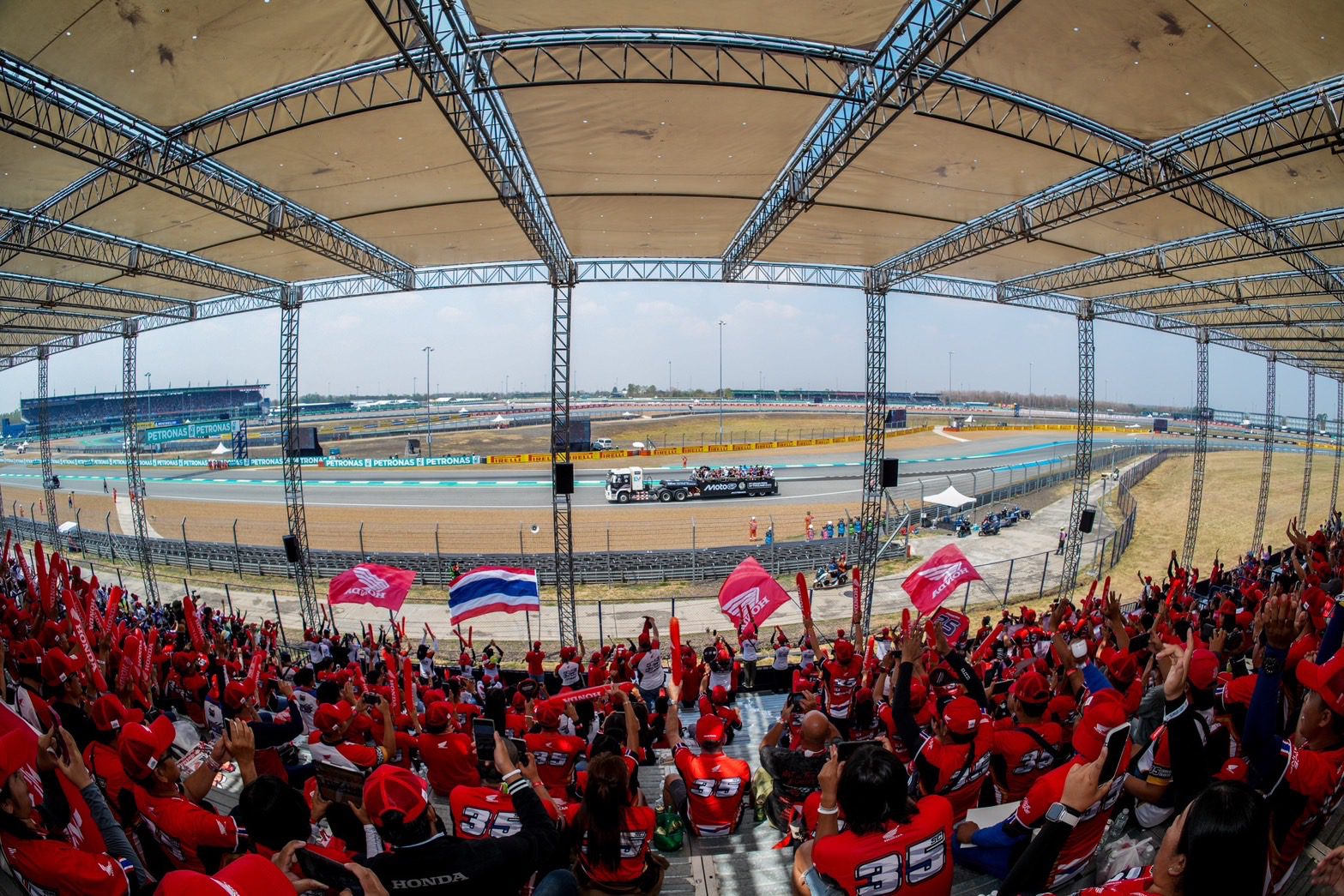 “ไทยฮอนด้า” ผู้นำอันดับหนึ่งวงการมอเตอร์สปอร์ตไทย ส่งมอบประสบการณ์สุดพิเศษระดับโลกแบบจัดเต็ม พาแฟนๆ มอเตอร์สปอร์ตร่วมประสบการณ์เชียร์ระดับโลกทั้ง “จันทรา สแตนด์“ และ “ฮอนด้า สแตนด์” จารึกนาทีประวัติศาสตร์ ร่วมส่งกำลังใจเชียร์นักบิดโมโตจีพีชาวไทยคนแรก “ก้อง” สมเกียรติ จันทรา ซึ่งลงแข่งขันสนามแรกในสนามบ้านเกิด และทัพนักบิดฮอนด้า ในการแข่งขันจักรยานยนต์ทางเรียบชิงแชมป์โลก รายการ “พีที กรังด์ปรีซ์ ออฟ ไทยแลนด์ 2025” ที่ สนามช้าง อินเตอร์เนชั่นแนล เซอร์กิต จังหวัดบุรีรัมย์ เมื่อวันที่ 2 มีนาคมที่ผ่าน