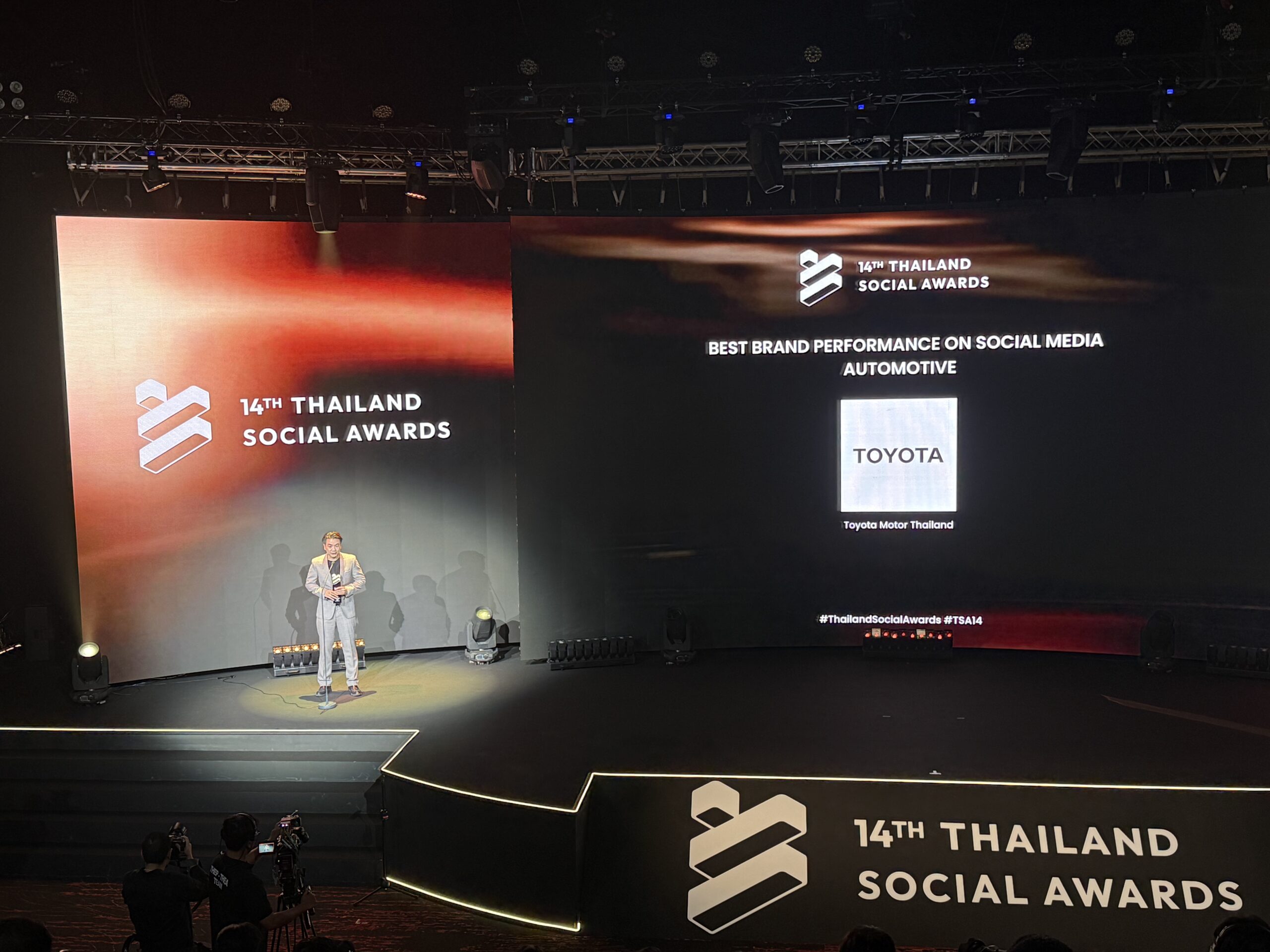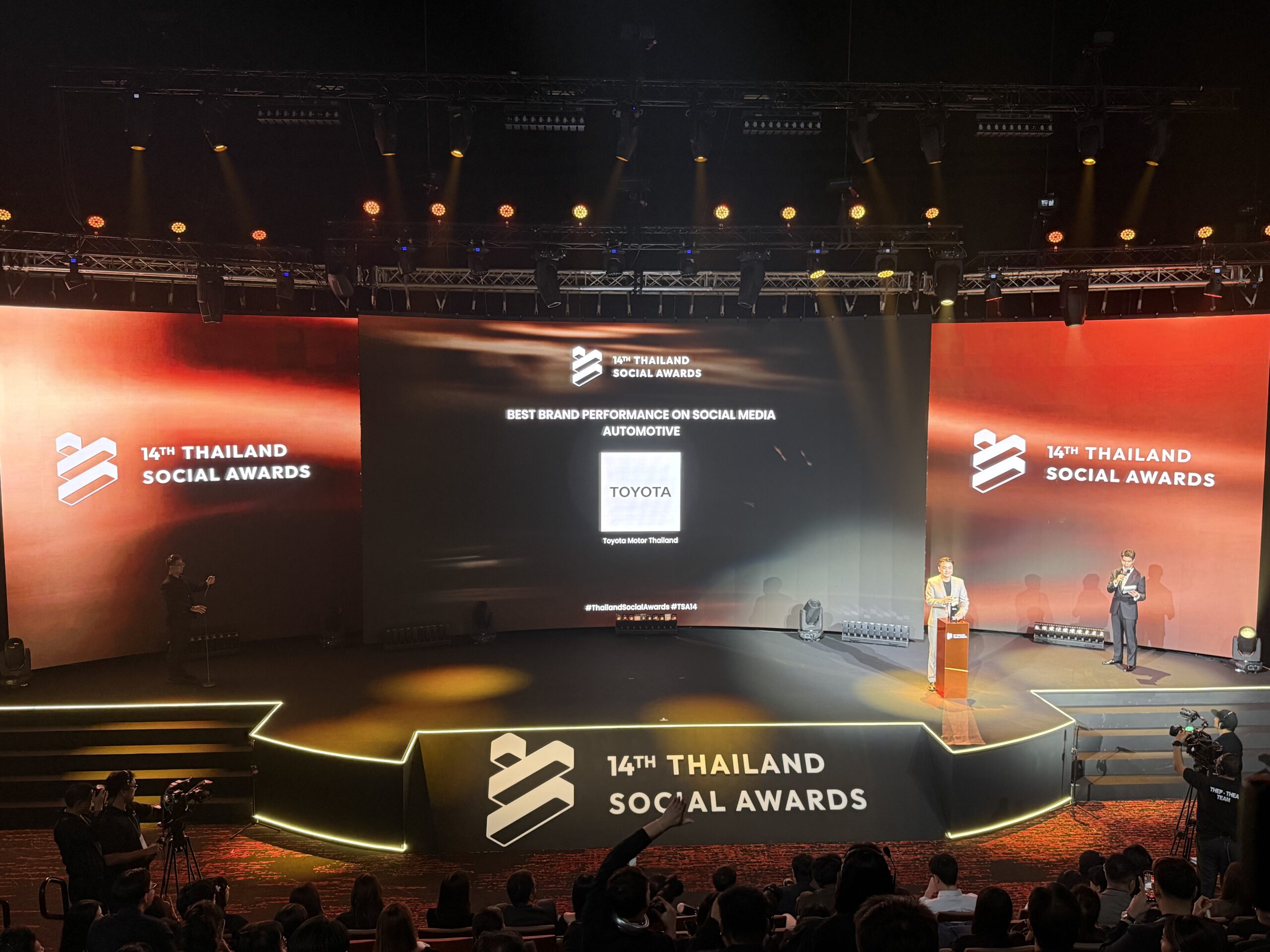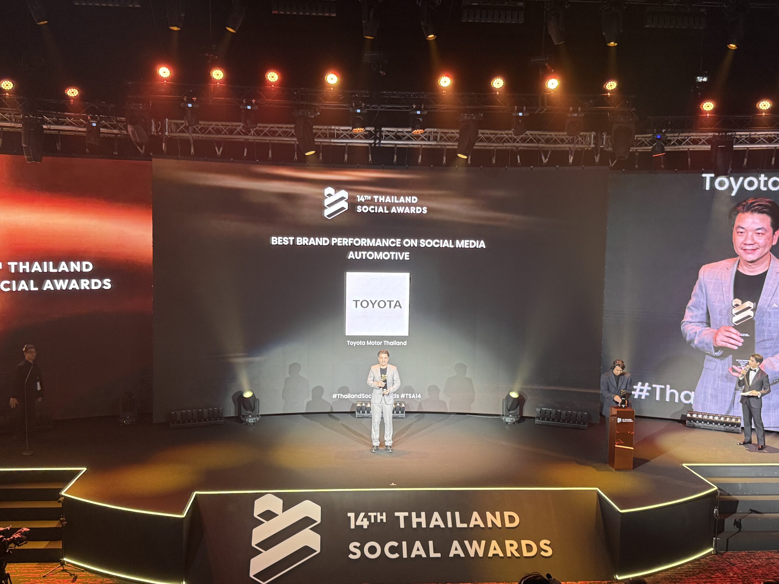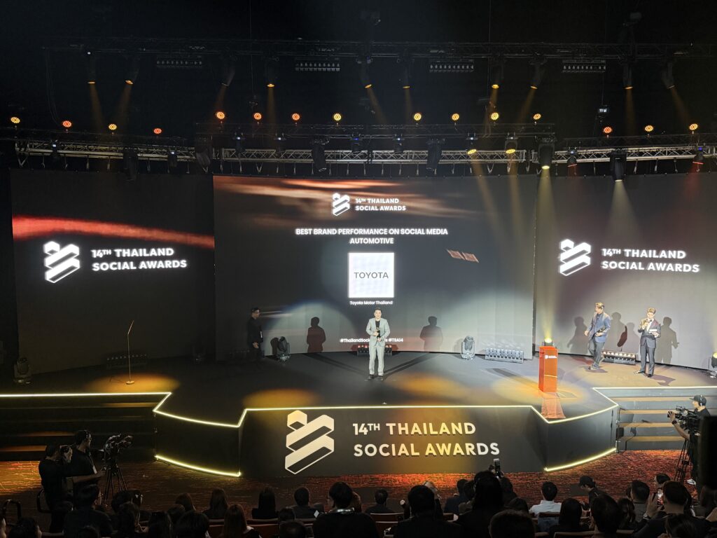 บริษัท โตโยต้า มอเตอร์ ประเทศไทย จำกัด คว้ารางวัล “BEST BRAND PERFORMANCE ON SOCIAL MEDIA” หรือ “แบรนด์ที่ทำผลงานยอดเยี่ยมบนโลกโซเชียลมีเดีย” สาขากลุ่มธุรกิจรถยนต์ 6 ปีซ้อน (2021-2026) จากการประกาศรางวัล THAILAND SOCIAL AWARDS ครั้งที่ 14 โดยมี นายสุพฤติ ทิพยะวัฒน์ ผู้อำนวยการฝ่ายการปฏิรูปทางดิจิทัล เป็นตัวแทนรับมอบรางวัล เมื่อวันที่ 25 กุมภาพันธ์ ที่ผ่านมา ณ ทรู ไอคอน ฮอลล์ ไอคอนสยาม ชั้น 7