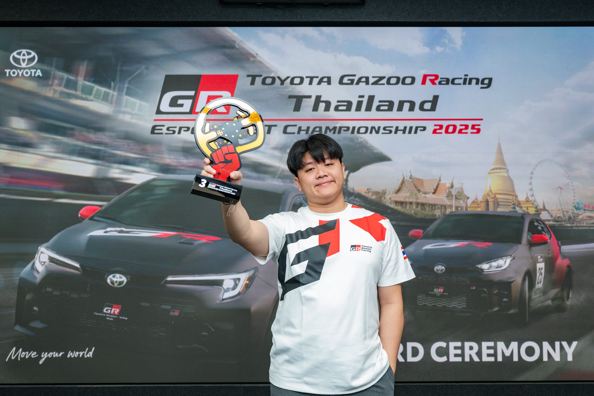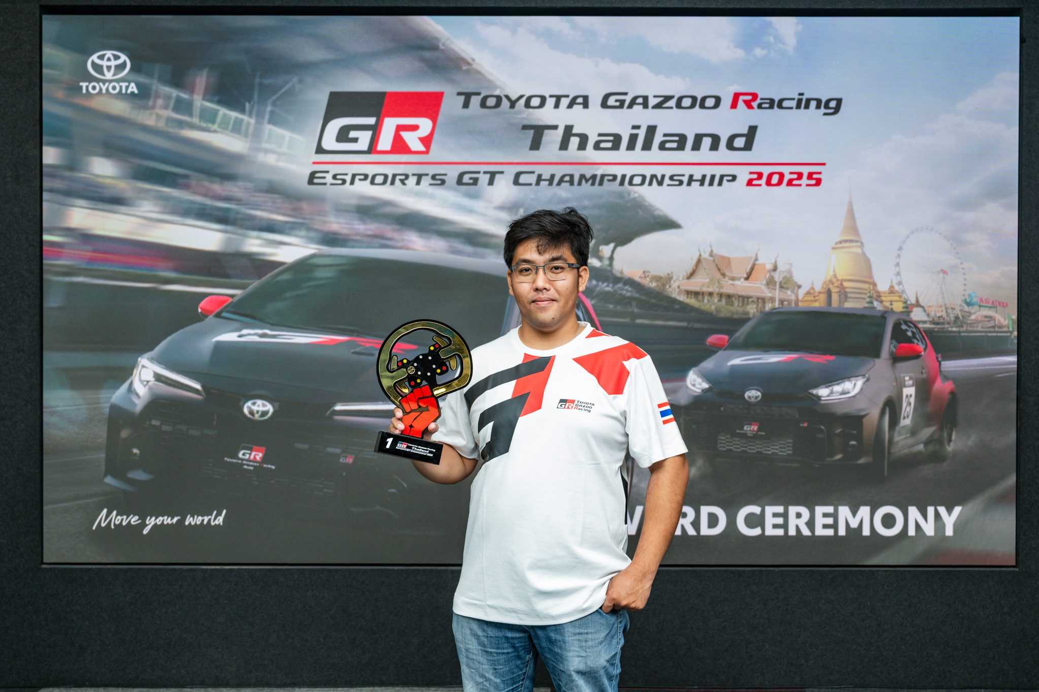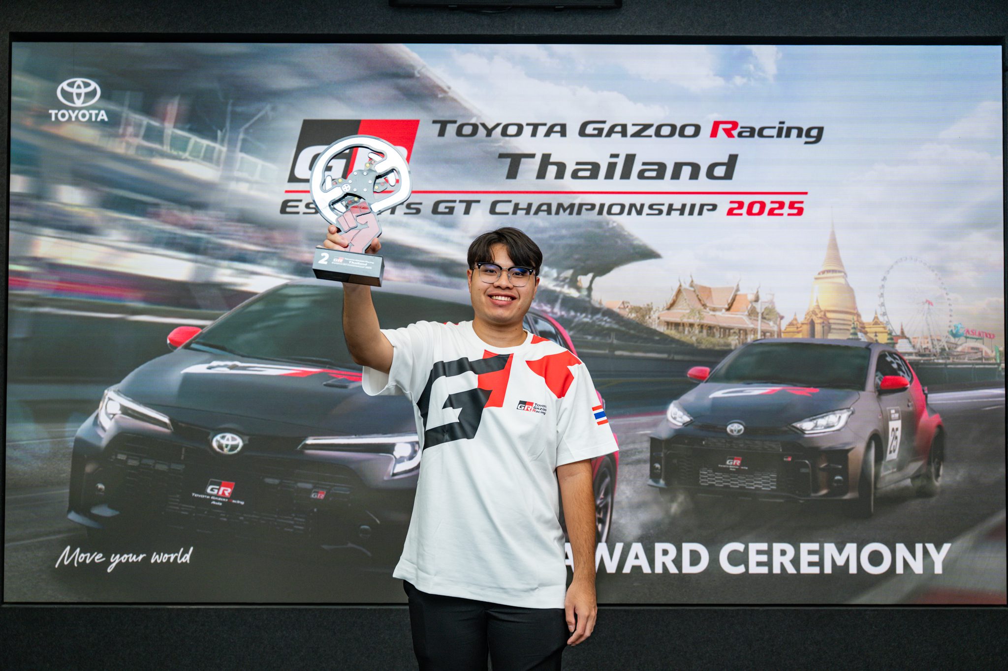 บริษัท โตโยต้า มอเตอร์ ประเทศไทย จำกัด ส่งเสริมและสนับสนุนกีฬา e-Motorsport มาอย่างต่อเนื่องตั้งแต่ปี 2020 ในโครงการ TOYOTA GAZOO RACING THAILAND ESPORT GT CHAMPIONSHIP ภายใต้วัตถุประสงค์ เพื่อตอบรับการเปลี่ยนแปลงของเทรนด์โลก พร้อมเปิดโอกาสผู้มีความชื่นชอบในกีฬาแข่งรถ ได้สัมผัสประสบการณ์อันตื่นเต้น เร้าใจ กับความท้าทายใหม่ๆ ในโลกเสมือนจริง โดยในปี 2025 นี้ นับเป็นปีที่ 5 ของการจัดการแข่งขันในประเทศไทย สะท้อนถึงความตั้งใจจริงในการพัฒนาวงการ e-Motorsport ให้เติบโตอย่างยั่งยืน