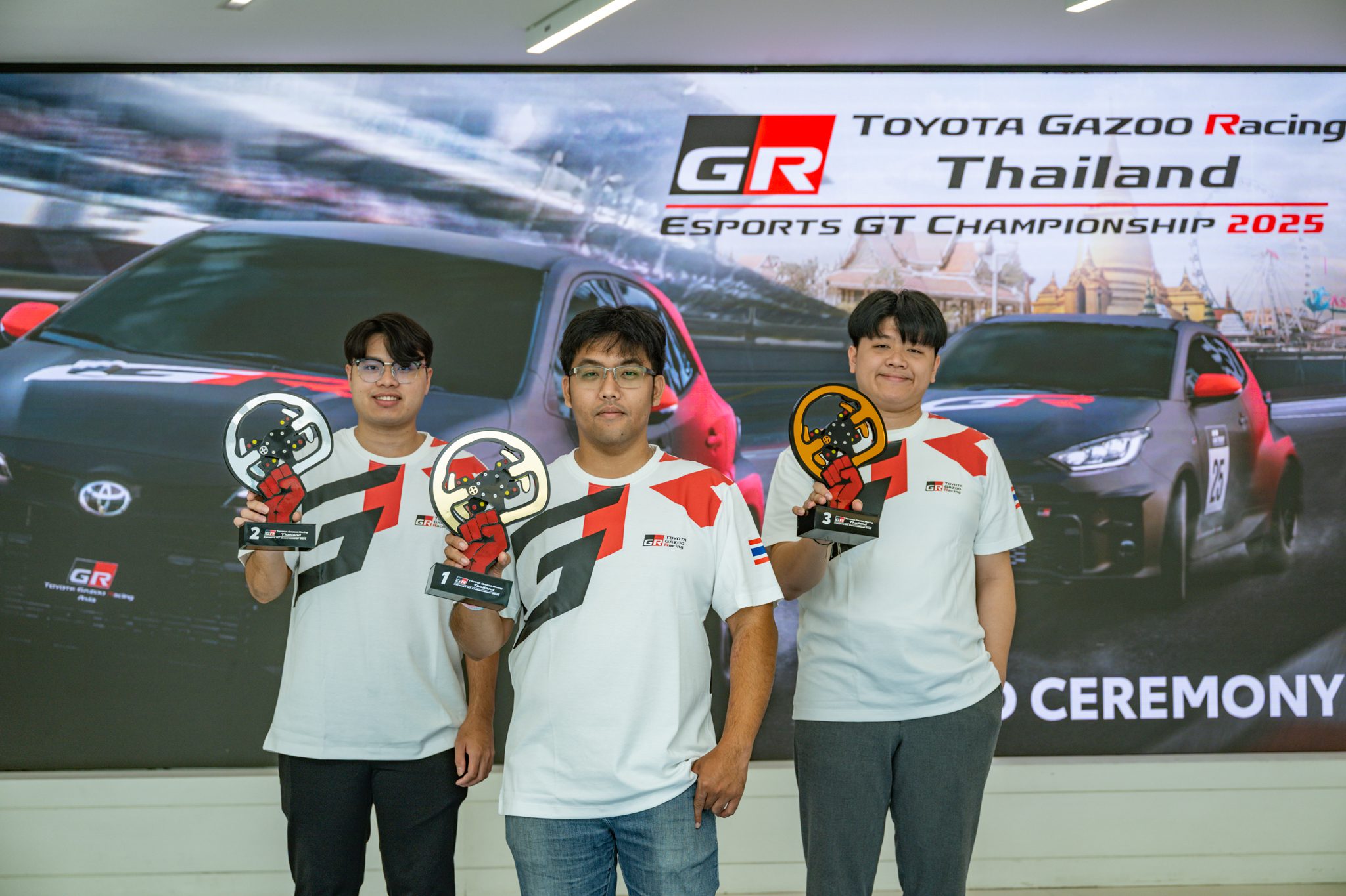 โตโยต้าร่วมแสดงความยินดี “ธนภัทร – ไชยภัทร – ไหมจักรี” ผู้ชนะ TOYOTA GAZOO RACING THAILAND ESPORT GT CHAMPIONSHIP 2025 พร้อมคว้าสิทธิ์ตัวแทนประเทศไทยลุยศึกชิงแชมป์เอเชีย