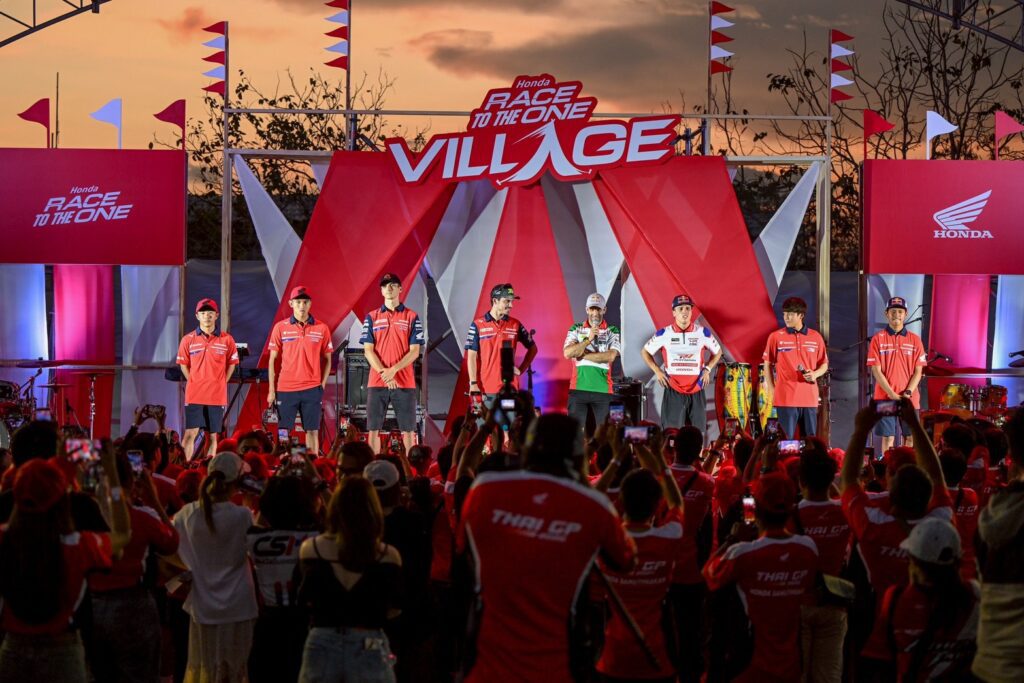 นอกจากนี้ “ไทยฮอนด้า” ยังจัดกิจกรรม Honda Race to The One Village ชวนสมาชิกจาก Honda Wing Center, Honda BigBike และ CUB House เปิดบ้านต้อนรับแฟนความเร็วทุกค่ายให้เข้ามาสัมผัสความประทับใจไปด้วยกัน ไฮไลต์สำคัญของงานคือเปิดโอกาสให้แฟนความเร็วได้สัมผัสนักแข่งระดับโลกจาก ฮอนด้า เอชอาร์ซี และ ฮอนด้า แอลซีอาร์ ที่นำทับขบวนพาเหรดนักแข่งฮอนด้าเข้าสู่ Honda Race to The One Village นำโดย “โจอัน เมียร์” และ “ลูก้า มารินี” จาก ฮอนด้า เอชอาร์ซี พร้อมด้วยนักบิดมากประสบการณ์อย่าง “โยฮันน์ ซาร์โก” และ “ดิโอโก้ โมเรร่า” จาก แอลซีอาร์ ฮอนด้า และยังมีนักบิดขวัญใจชาวไทย “ก้อง-สมเกียรติ” และ นักบิดโมโตครอสดาวรุ่ง “นีโม่-จิรัฎฐ์” จาก ฮอนด้า เอชอาร์ซี รวมถึงนักแข่ง Honda Racing Thailand ร่วมขบวนอย่างยิ่งใหญ่