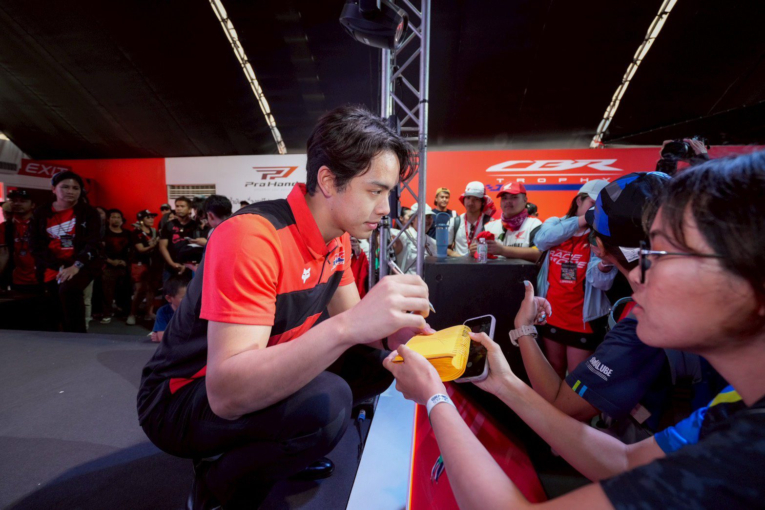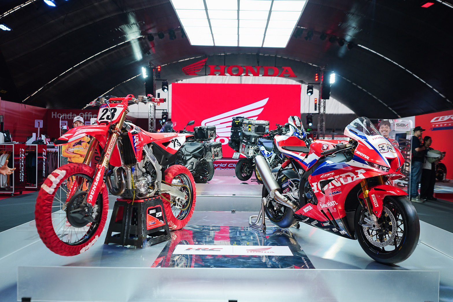 ภายในงาน Honda Exhibition Hall จัดเต็มให้แฟนมอเตอร์สปอร์ตชมรถแข่งระดับโลกอย่าง Honda CBR1000RR-R ซึ่งขับโดยฮีโร่ชาวไทยอย่าง “ก้อง”สมเกียรติ จันทรา และ Honda CRF450R ขับโดยดาวรุ่งพุ่งแรง “นีโม่” จีรัฎฐ์ วรรณลักษณ์ จากทีม ฮอนด้า เอชอาร์ซี พร้อมกิจกรรม Meet & Greet เปิดโอกาสให้แฟนๆ ได้พบปะ พูดคุย และถ่ายภาพร่วมกับนักบิดระดับโลกอย่างใกล้ชิด รวมถึงพบกับฮอนด้าคอลเล็กชันที่หลากหลายให้แฟนความเร็วได้จับจอง ซึ่งภายในงานได้ต้อนรับ คุณเนวิน ชิดชอบ ประธาน บริษัท บุรีรัมย์ ยูไนเต็ด อินเตอร์เนชั่นแนล เซอร์กิต จำกัด เข้าเยี่ยมชมกิจกรรมใน Honda Exhibition Hall โดยมี ดร.อารักษ์ พรประภา ประธานบริษัท ไทยฮอนด้า จำกัด ร่วมมอบ ฮอนด้า คอลเล็กชัน
