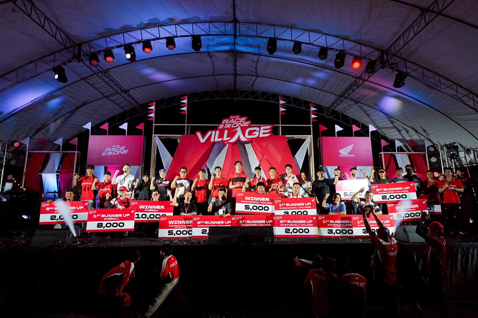 นอกจากนี้ “ไทยฮอนด้า” ยังจัดกิจกรรม Honda Race to The One Village ชวนสมาชิกจาก Honda Wing Center, Honda BigBike และ CUB House เปิดบ้านต้อนรับแฟนความเร็วทุกค่ายให้เข้ามาสัมผัสความประทับใจไปด้วยกัน ไฮไลต์สำคัญของงานคือเปิดโอกาสให้แฟนความเร็วได้สัมผัสนักแข่งระดับโลกจาก ฮอนด้า เอชอาร์ซี และ ฮอนด้า แอลซีอาร์ ที่นำทับขบวนพาเหรดนักแข่งฮอนด้าเข้าสู่ Honda Race to The One Village นำโดย “โจอัน เมียร์” และ “ลูก้า มารินี” จาก ฮอนด้า เอชอาร์ซี พร้อมด้วยนักบิดมากประสบการณ์อย่าง “โยฮันน์ ซาร์โก” และ “ดิโอโก้ โมเรร่า” จาก แอลซีอาร์ ฮอนด้า และยังมีนักบิดขวัญใจชาวไทย “ก้อง-สมเกียรติ” และ นักบิดโมโตครอสดาวรุ่ง “นีโม่-จิรัฎฐ์” จาก ฮอนด้า เอชอาร์ซี รวมถึงนักแข่ง Honda Racing Thailand ร่วมขบวนอย่างยิ่งใหญ่