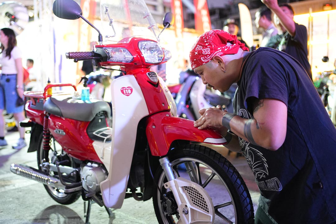 ภายในงาน Super Cub THE ORIGINAL CLUB MEETING เต็มไปด้วยกลิ่นอายความเรโทรสุดคลาสสิกในแบบฉบับ Super Cub โดยมีรถ Super Cub กว่า 200 คัน จากทั่วประเทศมาร่วมอวดโฉมในลานรวมรถสุดยิ่งใหญ่ริมแม่น้ำเจ้าพระยา สะท้อนพลังแห่งคอมมูนิตี้คนรักความออริจินัลที่มาร่วมเฉลิมฉลองความคลาสสิกไปด้วยกัน ผู้เข้าร่วมได้เพลิดเพลินกับกิจกรรมที่จัดเต็มในสไตล์ Super Cub ไม่ว่าจะเป็นโซนอาหารและเครื่องดื่มสุดชิคให้ชิลกันฟรี กิจกรรม DIY สุดคูล การประกวดรถแต่งสวยจำกัดผู้เข้าประกวด 30 คัน การประกวดแต่งตัวออริจินัลสไตล์ รวมถึงการแสดงดนตรีสดและดีเจที่เพิ่มสีสันแห่งความสนุก พร้อมพบปะเหล่าอินฟลูเอนเซอร์สายคลาสสิกที่มาร่วมสร้างแรงบันดาลใจให้กับแฟน Super Cub ได้อบอุ่นและประทับใจตลอดงาน