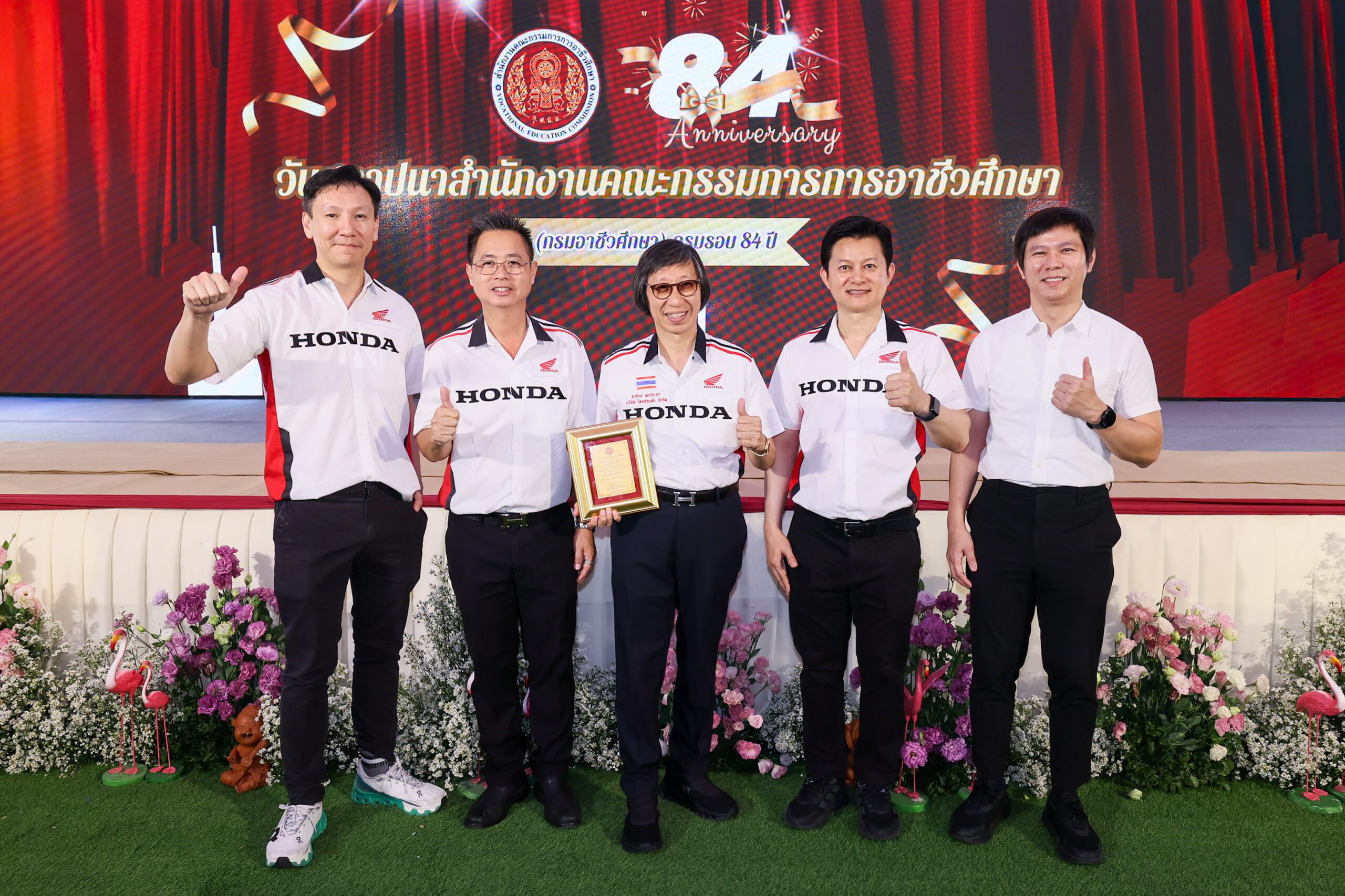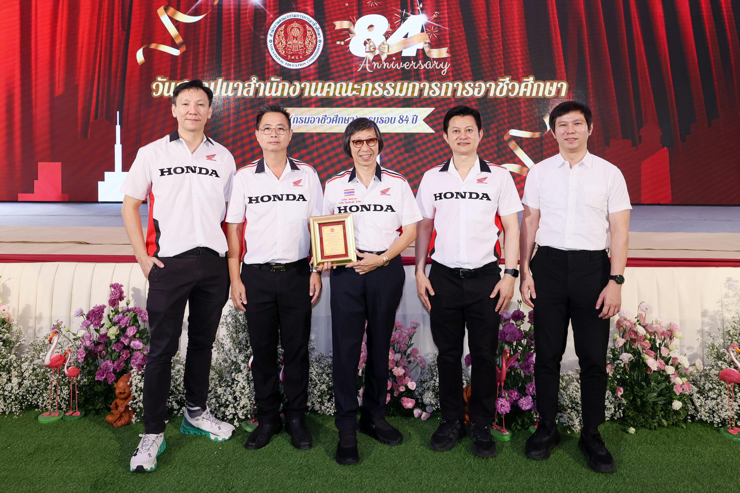 ไทยฮอนด้า ผู้ผลิตและจัดจำหน่ายรถจักรยานยนต์ และเครื่องยนต์อเนกประสงค์ฮอนด้าในประเทศไทย นำโดย ดร.อารักษ์ พรประภา ประธานบริษัท ไทยฮอนด้า จำกัด เข้ารับมอบประกาศเกียรติคุณผู้มีคุณูปการแก่สำนักงานคณะกรรมการการอาชีวศึกษา โดยมี ศ.ดร.นฤมล ภิญโญสินวัฒน์ รัฐมนตรีว่าการกระทรวงศึกษาธิการ เป็นผู้มอบรางวัลอันทรงเกียรตินี้ ในงานวันคล้ายวันสถาปนาสำนักงานคณะกรรมการการอาชีวศึกษา ครบรอบ 84 ปี ณ สำนักงานคณะกรรมการการอาชีวศึกษา