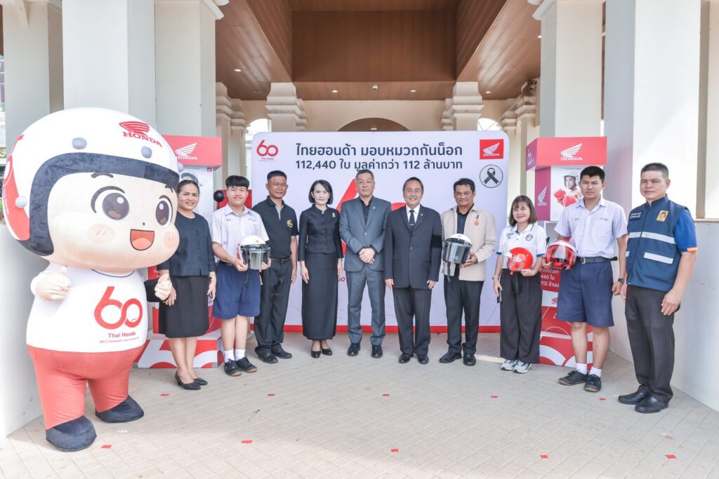 มร.ยูอิจิ ชิมิซุ ประธานกรรมการบริหาร บริษัท ไทยฮอนด้า จำกัด กล่าวว่า “เนื่องในโอกาสครบรอบ 60 ปีของไทยฮอนด้า เราอยากแสดงความขอบคุณและตอบแทนสังคมไทย ภายใต้แนวคิด ‘60 ปี ไทยฮอนด้า ขับขี่ปลอดภัย เพื่อสังคมไทยที่ยั่งยืน’ ด้วยการส่งมอบหมวกนิรภัยจำนวน 60,000 ใบ มูลค่า 60 ล้านบาท ร่วมกับผู้จำหน่ายฮอนด้าทั่วประเทศที่สมทบเพิ่มเติมอีก 52,440 ใบ รวมเป็น 112,440 ใบ มูลค่ากว่า 112 ล้านบาท ครอบคลุมทั้ง 77 จังหวัดทั่วประเทศ