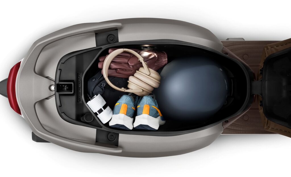 ด้านดีไซน์ New Honda Giorno+ อัปสไตล์เพิ่มความเท่และความทันสมัยมากยิ่งขึ้น ด้วยกรอบไฟหน้าสีดำ ตัดกับโลโก้ Honda อย่างลงตัว ในส่วนของเบาะนั่งเป็นสีน้ำตาล (ในรุ่น ABS) ที่ช่วยเติมความพรีเมียม ผสานกับตัวถัง และมือจับหลังที่เติมสีสันให้โดดเด่นเช่นเดียวกับสีตัวรถ อีกทั้ง Emblem ‘Giorno+’ สีรมดำช่วยเสริมความเรียบเท่และมีสไตล์ไปอีกขั้น และไฟ LED Light ใต้ช่องเก็บของที่มาพร้อมความจุ 30 ลิตร ตอบโจทย์ทุกไลฟ์สไตล์การใช้งาน