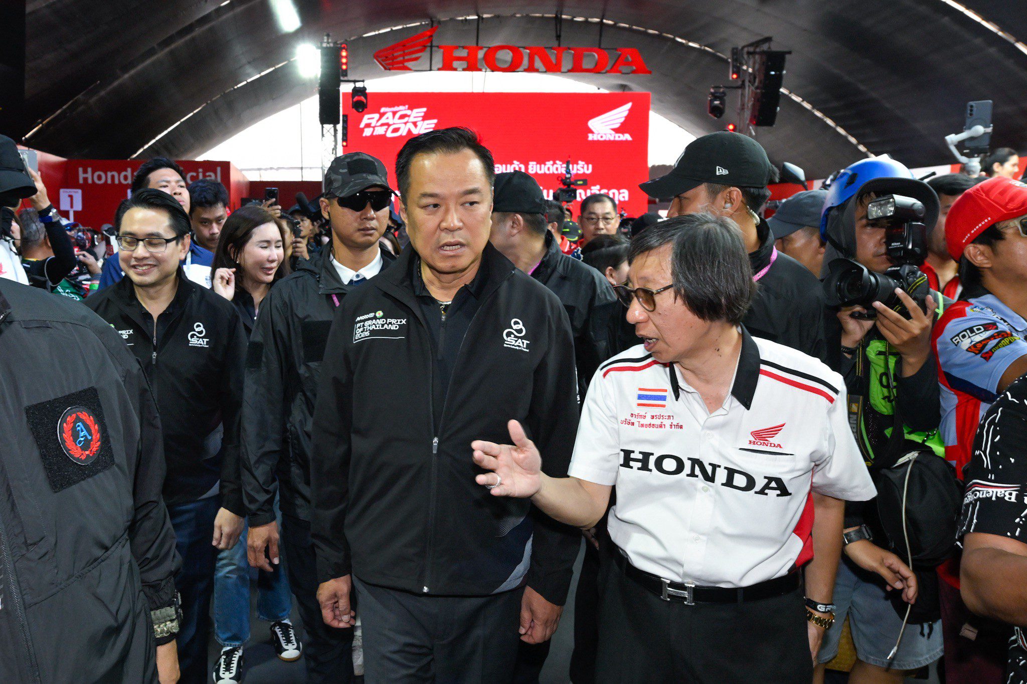 ดร.อารักษ์ พรประภา ประธานบริษัท ไทยฮอนด้า จำกัด ให้การต้อนรับนายอนุทิน ชาญวีรกูล นายกรัฐมนตรี และรัฐมนตรีว่าการกระทรวงมหาดไทย พร้อมด้วยดร.ก้องศักด ยอดมณี ผู้ว่าการการกีฬาแห่งประเทศไทย ให้เกียรติเดินทางมาเป็นประธานในพิธีเปิดการแข่งขันจักรยานยนต์ทางเรียบชิงแชมป์โลก รายการพีที กรังด์ปรีซ์ ออฟ ไทยแลนด์ 2026 อย่างเป็นทางการ พร้อมพาชมบูธกิจกรรมภายใน Honda Exhibition Hall ที่หนาแน่นไปด้วยแฟนๆ มอเตอร์สปอร์ต ที่มารอต้อนรับอย่างอบอุ่น ซึ่งสนามช้าง อินเตอร์เนชั่นแนล เซอร์กิต จ.บุรีรัมย์ เป็นสนามแรกในการเปิดฤดูการแข่งขัน MotoGP 2026 ที่ประเทศไทย ระหว่างวันที่ 27 กุมภาพันธ์ – 1 มีนาคมนี้