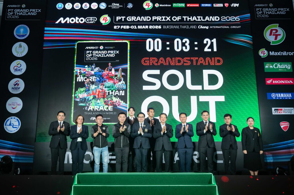 รัฐบาลไทย นำโดย การกีฬาแห่งประเทศไทย กระทรวงการท่องเที่ยวและกีฬา แถลงข่าวความพร้อมการเป็นเจ้าภาพจัดการแข่งขันจักรยานยนต์ทางเรียบชิงแชมป์โลก “โมโตจีพี” สนามประเทศไทย ประจำปี 2569 ภายใต้ชื่อ “PT Grand Prix of Thailand 2026” ซึ่งได้รับเกียรติสูงสุด ขึ้นแท่นสนามเปิดฤดูกาล เป็นปีที่ 2 ติดต่อกัน ตอกย้ำก้าวสำคัญสู่ปีที่ 7 ที่แข็งแกร่งของไทยบนแผนที่มอเตอร์สปอร์ตโลก พร้อมเดินหน้า สานต่อความสำเร็จ ดันไทยสู่ “ฮับมอเตอร์สปอร์ตภูมิภาค” และสร้างต้นแบบเมืองกีฬาอาเซียน จุดพลุคอนเซ็ปต์ ‘More Than a Race’ จัดใหญ่-สนุกขึ้น ตั้งเป้าเป็นสนามแข่งที่ดีที่สุดและน่าจดจำที่สุดในปฏิทิน MotoGP ลุ้นสร้างสถิติใหม่ผู้ชมสูงสุดทำลายสถิติเดิม พร้อมเปิดจำหน่ายบัตรวันแรก กระแสตอบรับดีเยี่ยม ที่นั่งแกรนด์สแตนด์ Sold Out ด้วยเวลา 3.21 นาที