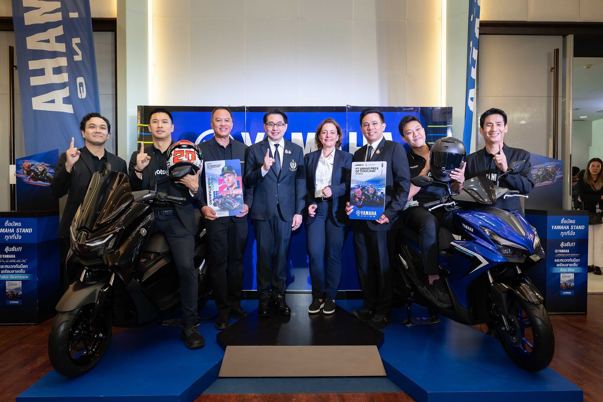 ทั้งนี้ “บัตรเข้าชม โมโตจีพี สนามประเทศไทย 2026” แบ่งเป็น 4 ประเภท เข้าชม Pre-Season Test ได้ฟรี และชม Main Race ได้ทั้ง 3 วัน ได้แก่ 1.แกรนด์ สแตนด์ (Grandstand) 5,000 บาท (เห็นทุกโค้งทั่วสนาม) 2.ไรเดอร์ สแตนด์ (Rider Stand) 3,000 บาท สำหรับกองเชียร์นักแข่ง ได้แก่ มาร์เกซ สแตนด์, กวาร์ตาราโร สแตนด์ (พร้อมของที่ระลึก ลิขสิทธิ์แท้จากนักบิดคนโปรด) 3. ไซด์ สแตนด์ (Side Stand) 2,000 บาท 4.แบรนด์ สแตนด์ (Brand Stand ) 2,000 บาท สำหรับกองเชียร์จากค่ายรถจักรยานยนต์ Honda, YAMAHA (พร้อมสิทธิ์ลุ้นชิงโชคและรับของที่ระลึกจากผู้สนับสนุน) โดยบัตร Honda Stand รับของที่ระลึก ได้แก่ Cheering Kit มูลค่ากว่า 800 บาททุกที่นั่ง ประกอบด้วย เสื้อยืดสุดพิเศษจากไทยฮอนด้า, หมวก, กระเป๋า, กระบองลมและพัด ส่วน บัตร YAMAHA Stand ลุ้นรับรางวัลใหญ่ 2 รางวัล ได้แก่ 1.รถจักรยานยนต์ออล นิว ยามาฮ่า เอ็นแม็กซ์ และหมวกกันน็อกพร้อมลายเซ็น ฟาบิโอ กวาร์ตาราโร 2.รถจักรยานยนต์ออล นิว ยามาฮ่า แอร็อกซ์ และหมวกกันน็อกพร้อมลายเซ็นของ อเล็กซ์ รินส์ รวมมูลค่าของรางวัล 238,700 บาท