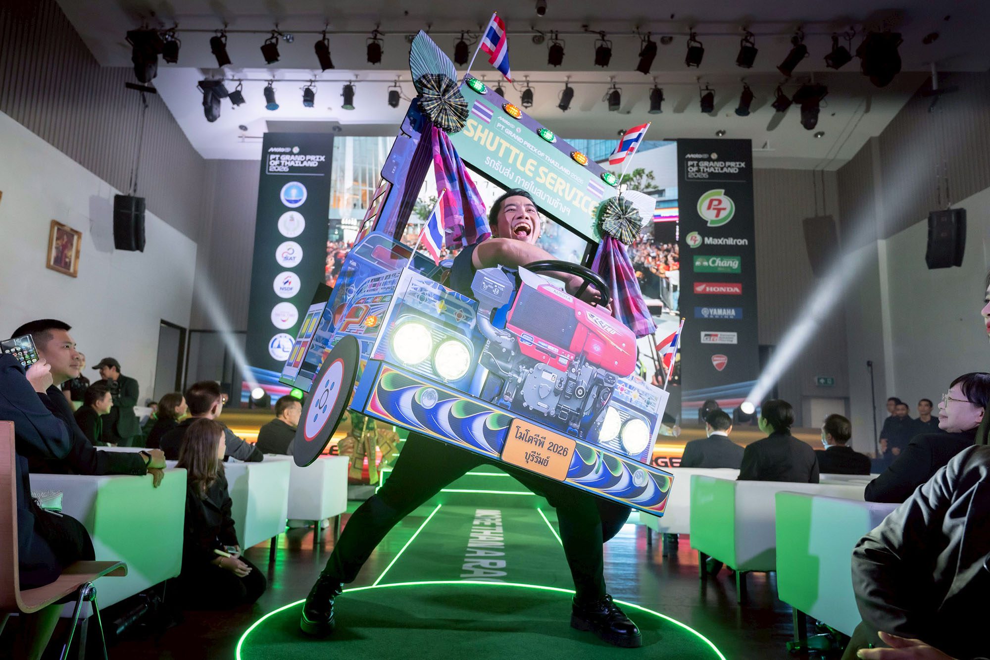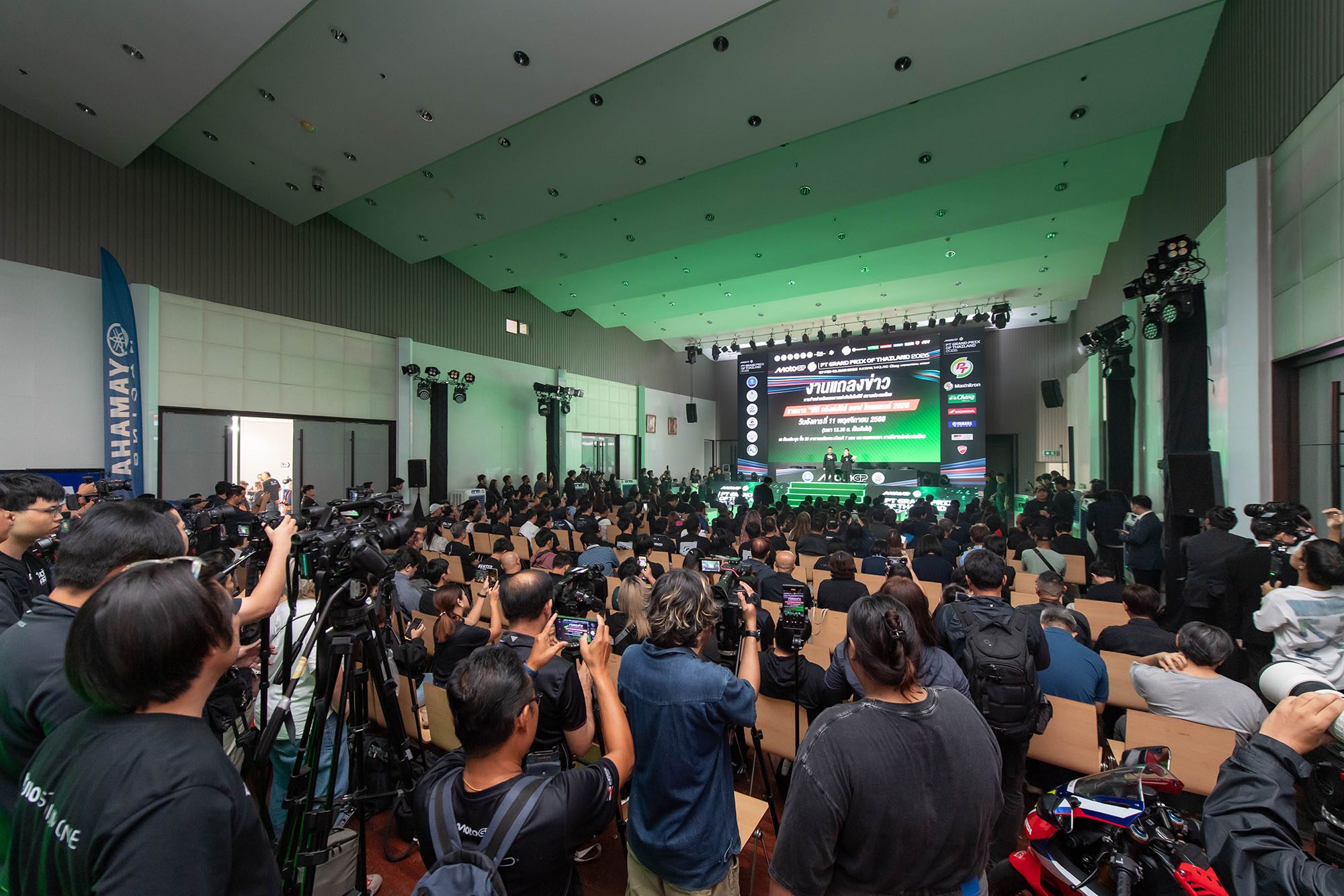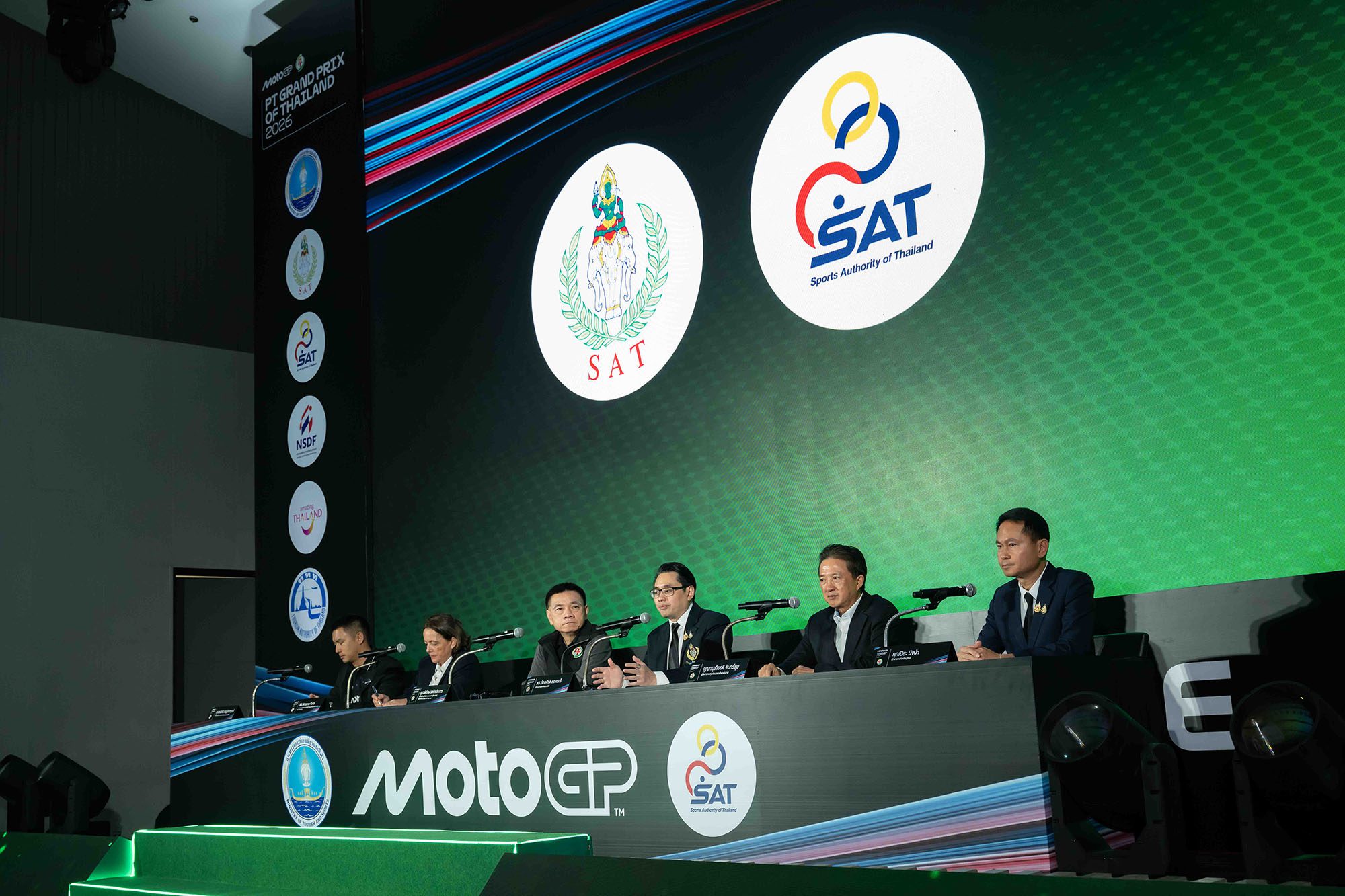 11 พ.ย. 2568 ที่ห้องประชุมชั้น 25 อาคารเฉลิมพระเกียรติ 7 รอบ การกีฬาแห่งประเทศไทย (หัวหมาก) : แถลงข่าวจัดการแข่งขันและเปิดจำหน่ายบัตรชม ศึกรถจักรยานยนต์ชิงแชมป์โลก “โมโตจีพี” รายการ “พีที กรังด์ปรีซ์ ออฟ ไทยแลนด์ 2026” (PT Grand Prix of Thailand 2026) โดยประเทศไทยเป็นเจ้าภาพ การทดสอบก่อนเปิดฤดูกาล หรือ Pre-Season Test วันที่ 21-22 ก.พ. และ สนามที่ 1 เปิดฤดูกาล ระหว่าง วันที่ 27 ก.พ. – 1 มี.ค. 2569 ที่ สนามช้าง อินเตอร์เนชั่นแนล เซอร์กิต จ.บุรีรัมย์ งานแถลงข่าวจัดขึ้นอย่างยิ่งใหญ่โดยมีกระทรวงการท่องเที่ยวและกีฬา โดย การกีฬาแห่งประเทศไทย ในฐานะเจ้าภาพ พร้อมด้วยตัวแทนภาครัฐและเอกชน ได้แก่ กองทุนพัฒนาการกีฬาแห่งชาติ, บริษัท พีทีจี เอ็นเนอยี จำกัด (มหาชน), ดอร์น่า สปอร์ต, จังหวัดบุรีรัมย์, สนามช้าง อินเตอร์เนชั่นแนล เซอร์กิต ร่วมแถลงข่าว รวมทั้งตัวแทนจาก การท่องเที่ยวแห่งประเทศไทย, กรมการขนส่งทางบก, น้ำแร่ธรรมชาติตราช้าง, บริษัท ไทยฮอนด้า จำกัด, บริษัท ไทยยามาฮ่ามอเตอร์ จำกัด, บริษัท เอเอเอส ออโต้ เซอร์วิส จำกัด (ดูคาติ ไทยแลนด์) ทัพสื่อมวลชนและผู้ร่วมงานมากกว่า 400 คน ถือเป็นงานแถลงข่าวที่ยิ่งใหญ่ที่สุดประจำปีของไทย