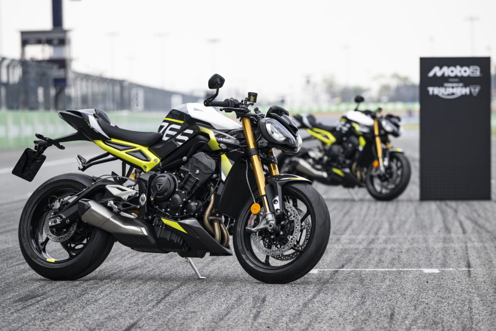 รุ่นที่พัฒนาจากสนามแข่งนี้ มาพร้อมรายละเอียดระดับพรีเมียมที่ได้รับแรงบันดาลใจจากรถแข่ง ไม่ว่าจะเป็นแผงข้างคาร์บอนไฟเบอร์ บังโคลนหน้า แผงใต้ท้องรถ และปลายท่อไอเสีย เพื่อมอบความเบาสบายและภาพลักษณ์ล้ำสมัย มาพร้อมเบาะลายปั๊มนูนสัญลักษณ์ Moto2™ เพื่อเพิ่มการยึดเกาะและการทรงตัวให้กับผู้ขับขี่ ไฟท้ายแบบเลนส์ใส และโลโก้ Moto2™ ที่สลักด้วยเลเซอร์บนท่อไอเสีย โดดเด่นด้วยโทนสี Mineral Grey & Crystal White ตัดกับซับเฟรมด้านท้ายสี Triumph Performance Yellow และแถบล้อหลังสีเดียวกัน สร้างภาพลักษณ์ที่สะท้อนจิตวิญญาณแห่งรถแข่งอย่างชัดเจน