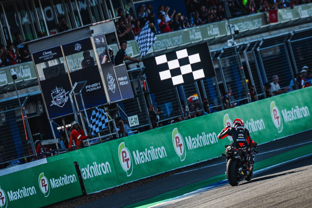 มาร์โก เบซเซคคี จากอพริเลีย เรซซิ่ง บิดนำม้วนเดียวจบคว้าแชมป์สนามแรกของปีไปครอง ท่ามกลางดราม่าของยอดนักบิดอย่าง มาร์ค มาร์เกซ ที่ต้องเจอวิกฤตยางแตกในช่วงท้ายเกม สร้างความตกตะลึงให้แฟนๆ อย่างมาก