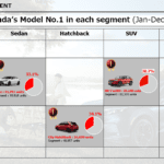 ทั้งนี้ ฮอนด้า ยังสามารถครองอันดับ 1 ใน 3 เซกเมนต์หลักของตลาดรถยนต์นั่ง ได้แก่