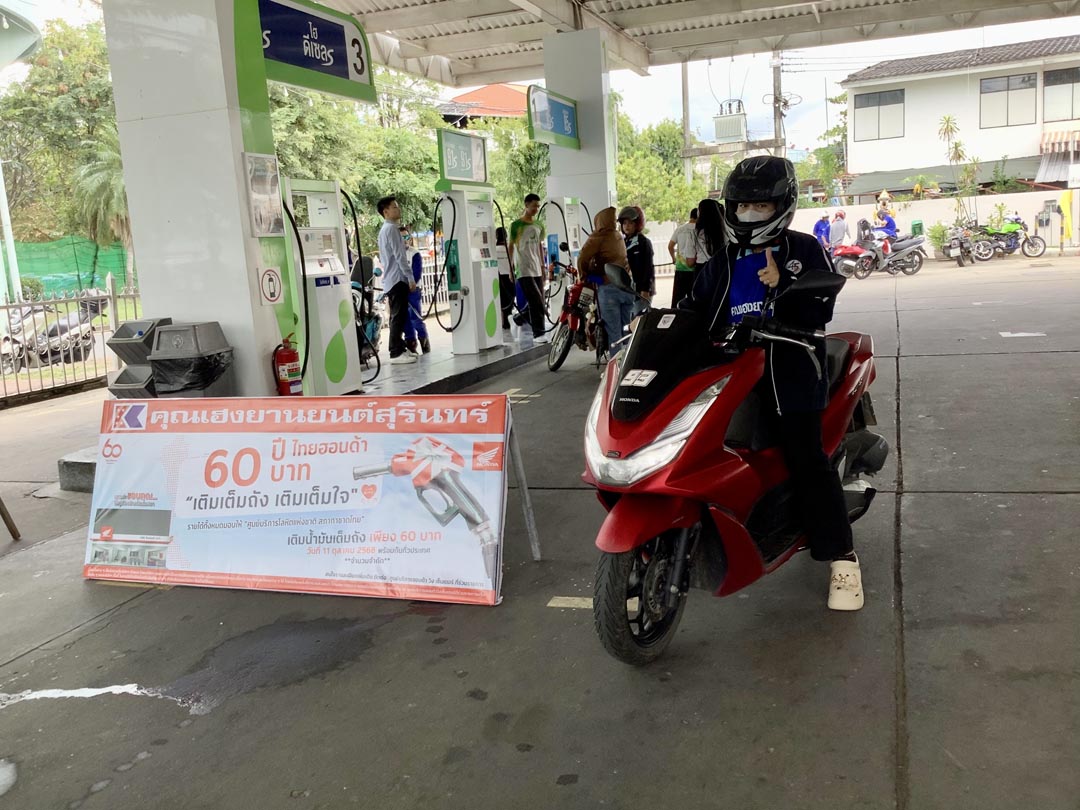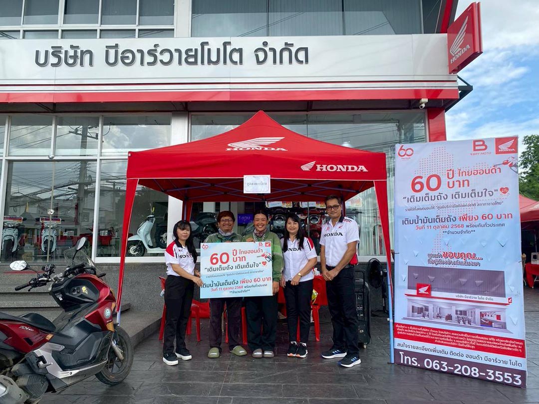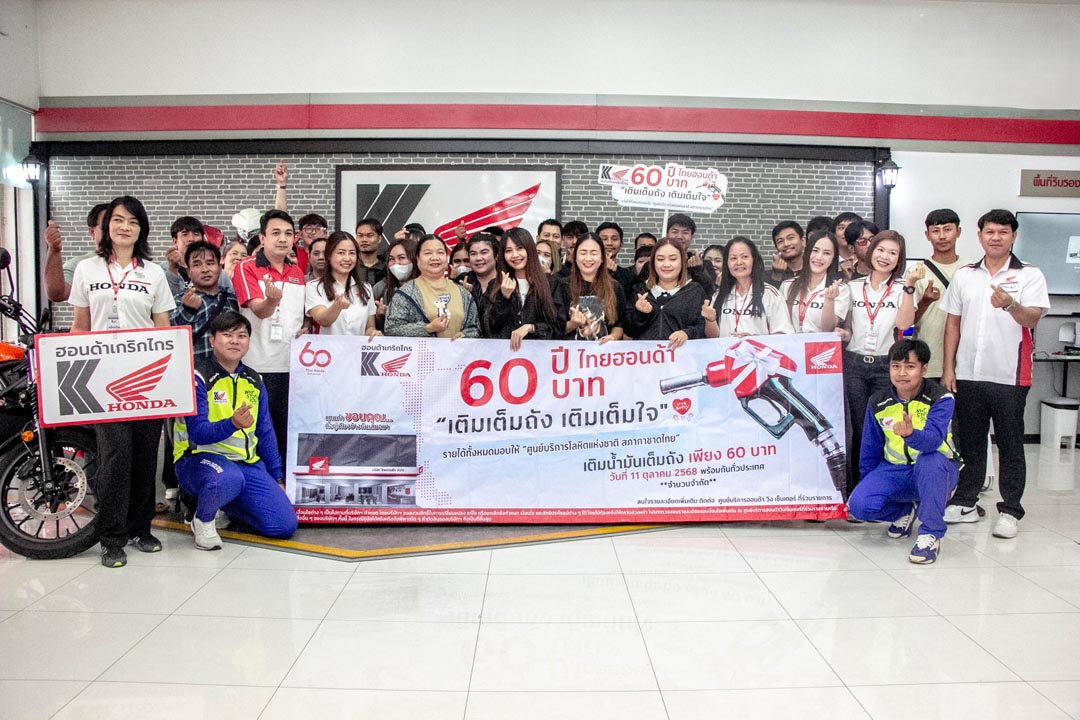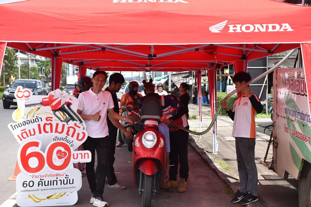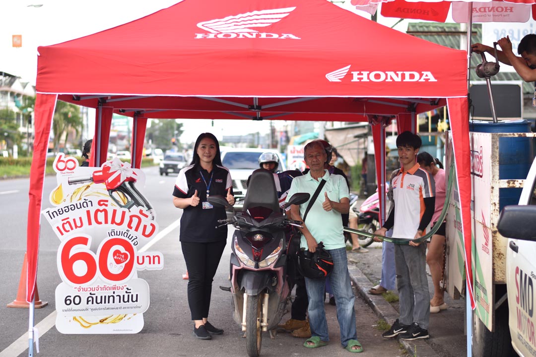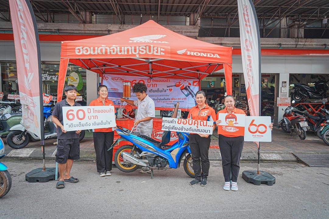 ไทยฮอนด้า ผู้ผลิตและจัดจำหน่ายรถจักรยานยนต์และเครื่องยนต์อเนกประสงค์ฮอนด้าในประเทศไทย ร่วมกับร้านผู้จำหน่ายทั่วประเทศ จัดกิจกรรมพิเศษ “เติมเต็มถัง เติมเต็มใจ” เติมน้ำมันเต็มถังในราคาเพียง 60 บาท เพื่อเป็นการขอบคุณลูกค้าชาวไทยที่มอบความไว้วางใจในแบรนด์มาอย่างยาวนานกว่า 6 ทศวรรษเนื่องในโอกาสครบรอบ 60 ปี ภายใต้แนวคิด “60 ปีไทยฮอนด้า เคียงข้างกันตลอดไป” เพื่อส่งต่อพลังแห่งความไว้วางใจจากผู้ใช้รถสู่สังคมไทย